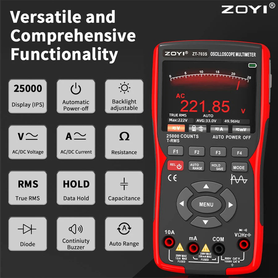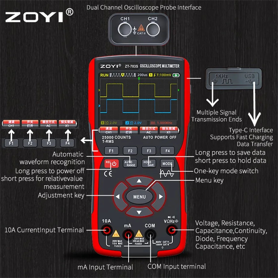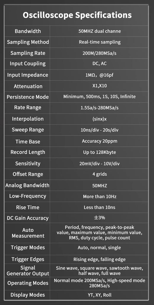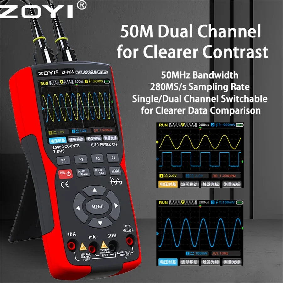 3-in-1 Digital Oscilloscope, Multimeter, Signal Generator, Dual Channel 50MHz, Automatic Tools