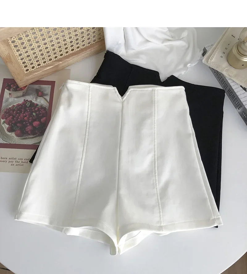 2023 Summer High-Waisted White Slimming Anti-Exposure Shorts for Petite Women