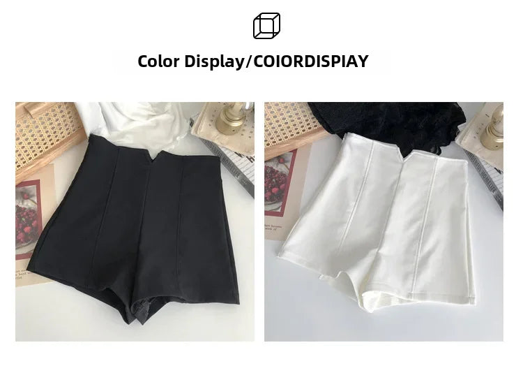 Introducing our stylish high-waisted shorts, perfect for the summer season. Crafted to accentuate the waistline, they offer a flattering slim fit for a chic, streamlined look. The elegant white bottoming adds sophistication, making these shorts a versatile addition to any wardrobe. Designed with a slim-tinned abdomen feature, they create a smooth silhouette. Their anti-light construction ensures comfort and coolness on warm days, ideal for outdoor activities. Join the trend with this internet favorite, especially suited for petite women seeking both comfort and style.