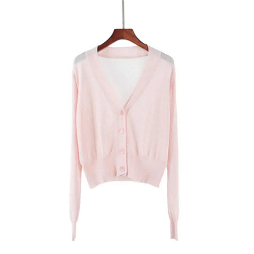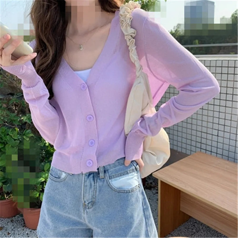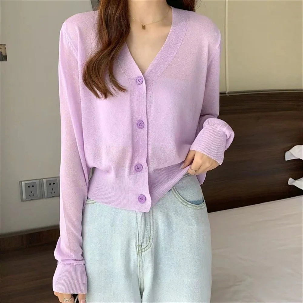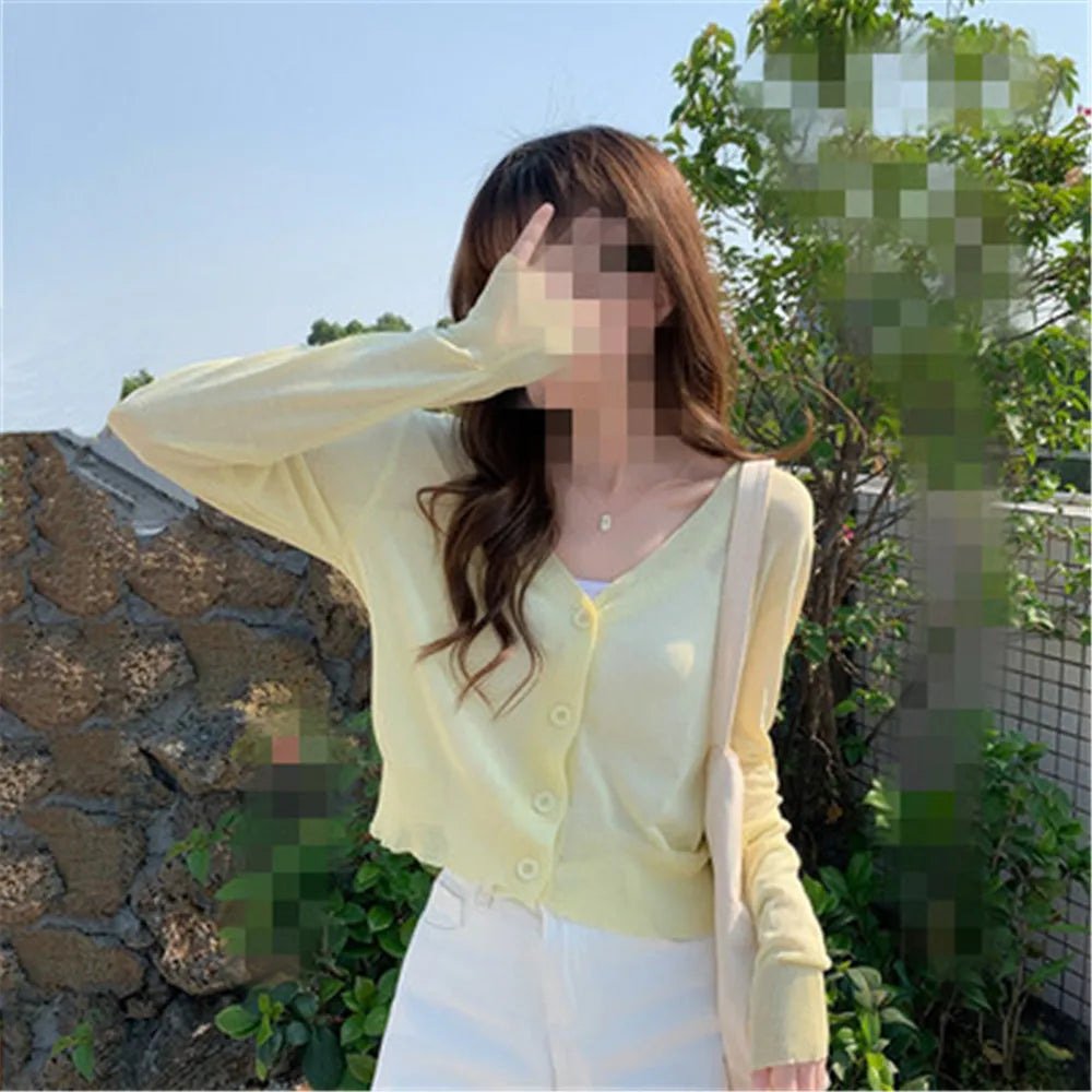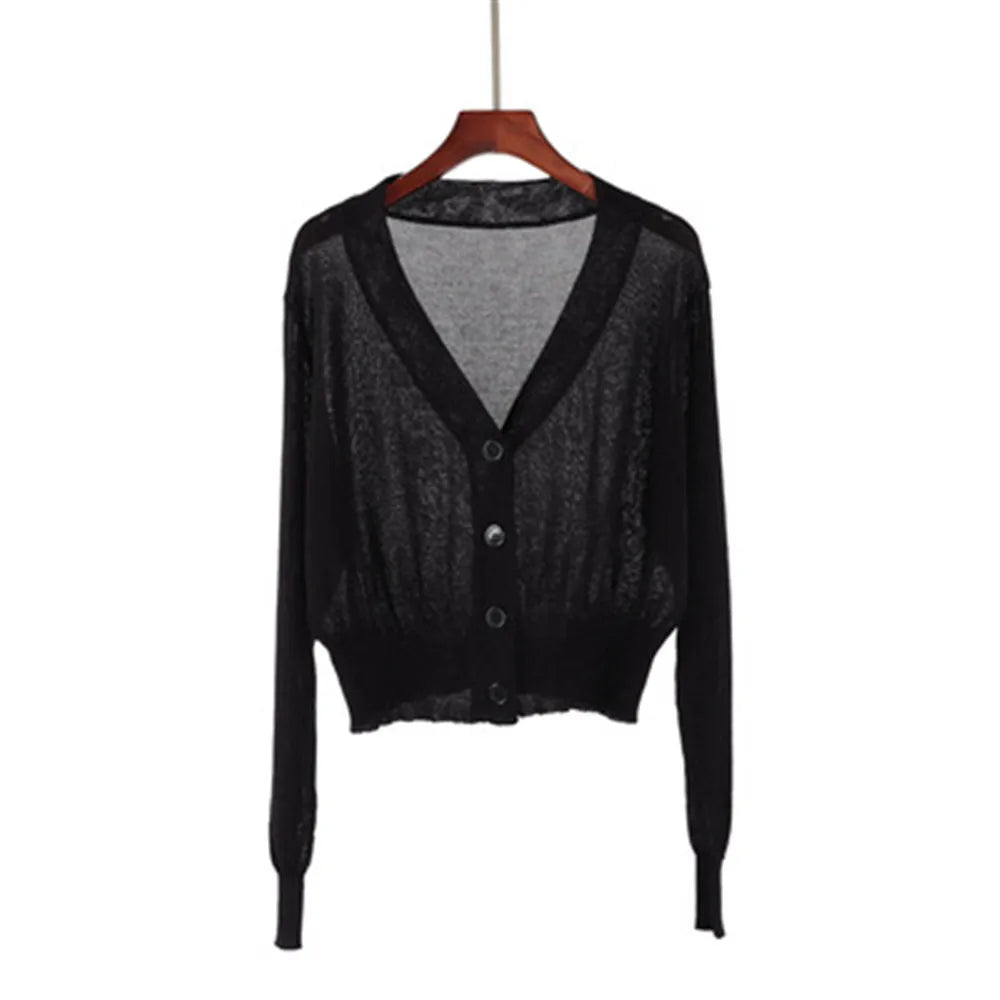 2024 Summer V Neck Women's Sheer Cardigan Sweater Casual Light Crop Top for Ladies
