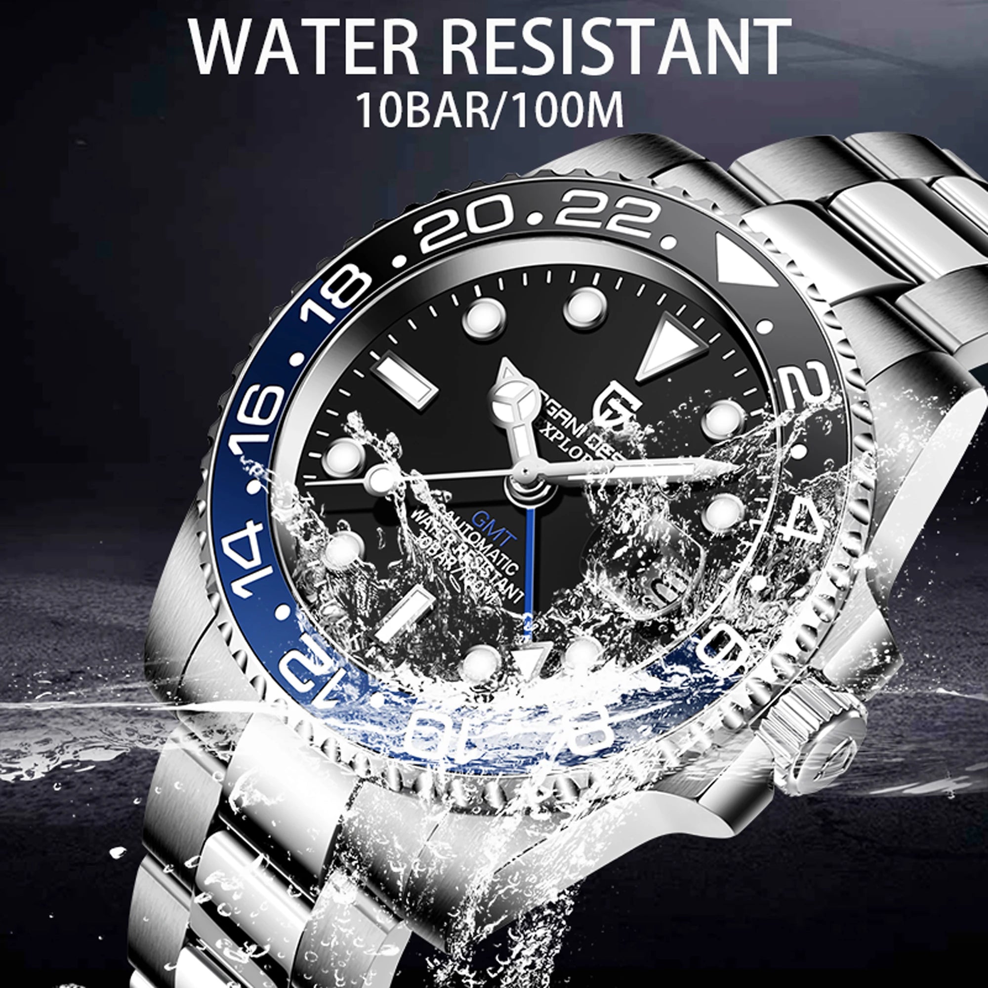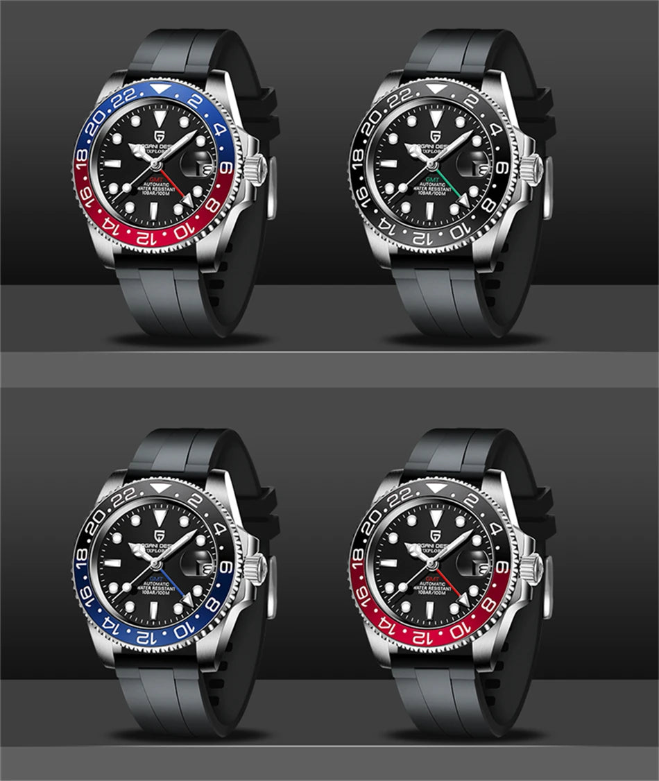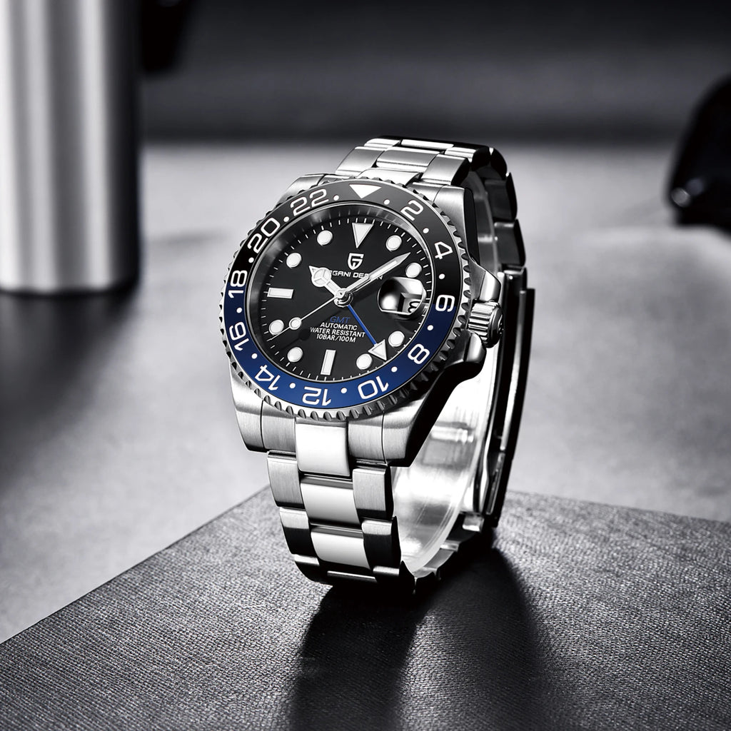 2024 Luxury Men's Mechanical GMT Watch Stainless Steel Sapphire Glass Reloj Hombre