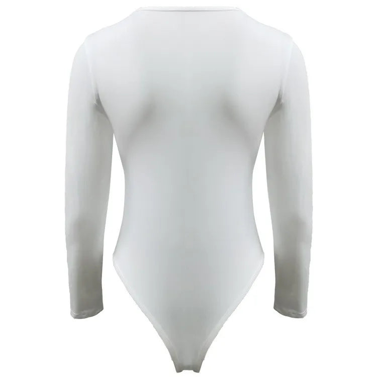 2024 Spring Long Sleeve Bodycon Bodysuit for Women - Black Coffee Office Outfit