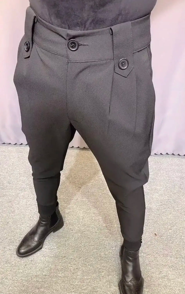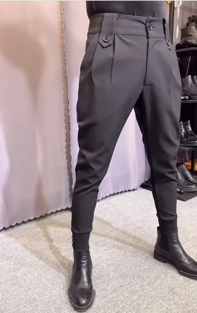 Elevate your casual wardrobe with these stylish suit pants designed for men. Perfect for daily wear during spring and autumn, these pants combine comfort and elegance seamlessly. Crafted from a high-quality blend of cotton and polyester, they are both durable and soft against the skin. The flat front style offers a modern, streamlined look, and the button fly closure adds a classic touch. Available in a variety of sizes, these pants are tailored to provide an excellent fit for every body type.
