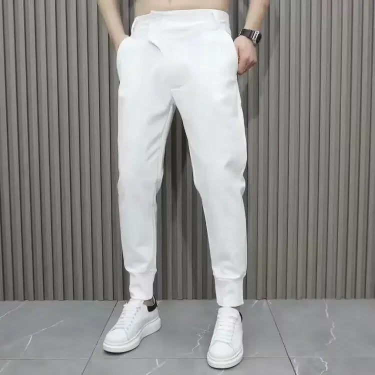 2024 Men's Slim Fit Suit Pants Casual Business Ankle Length Office Trousers Summer Fashion