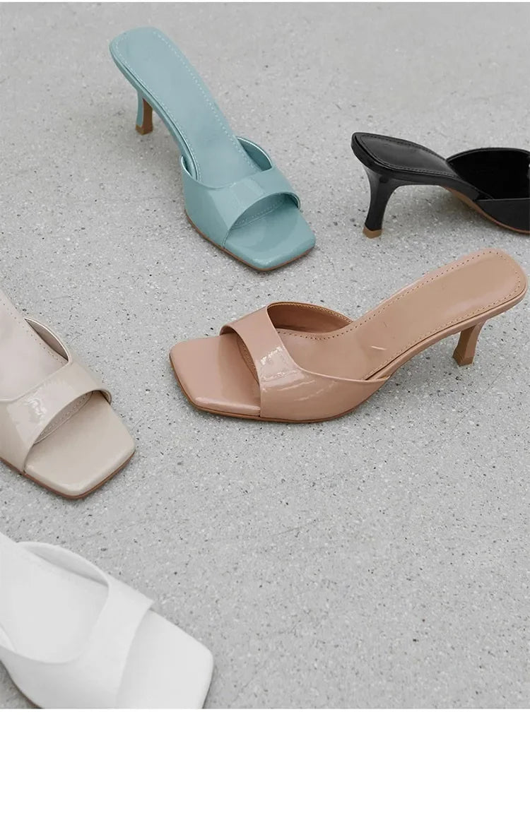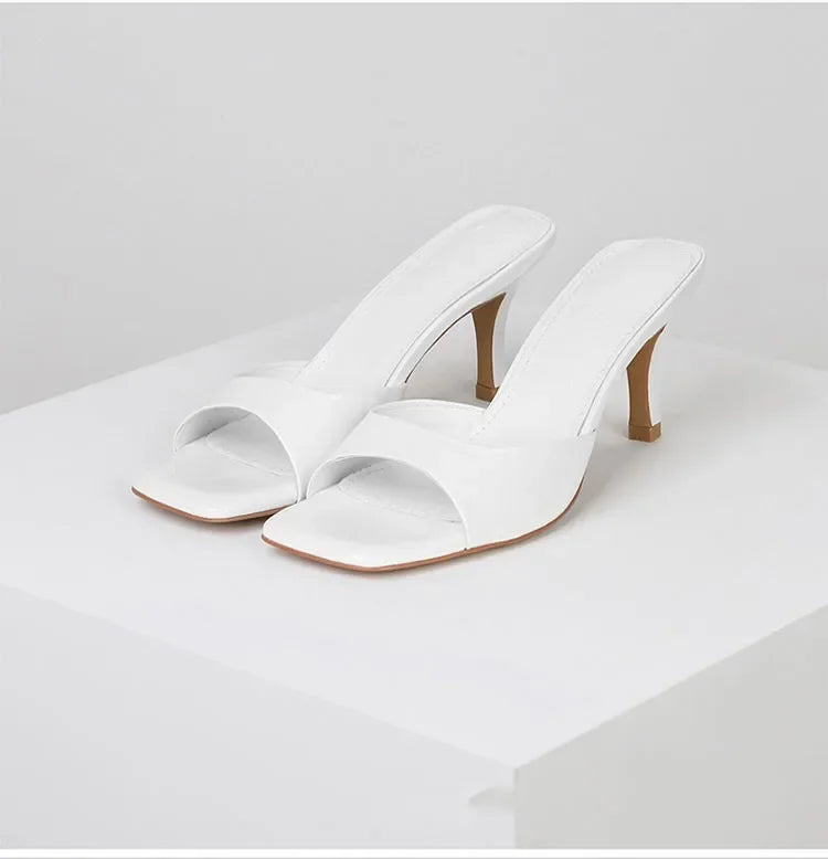 2024 Summer Square Toe High Heel Slippers for Women - Sexy Fashion Prom Slides, Simple Versatile Outdoor Shoes