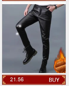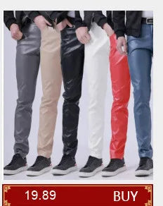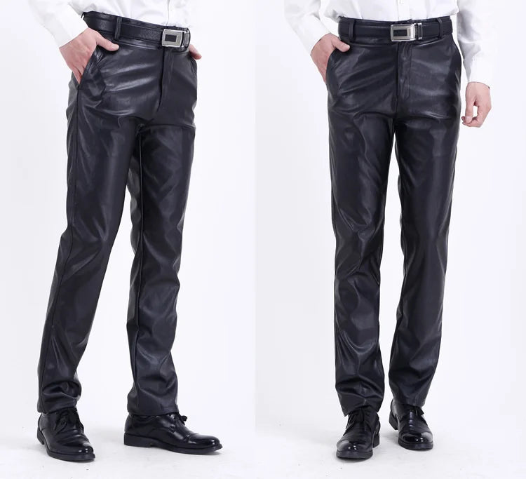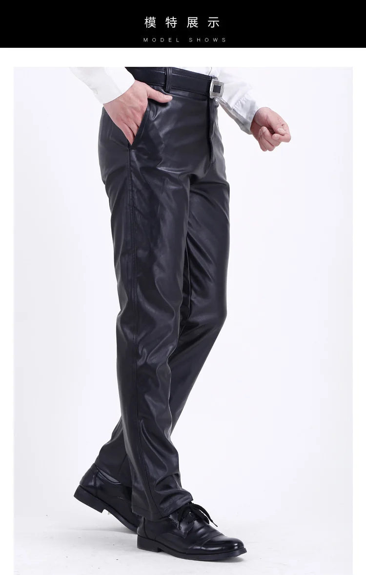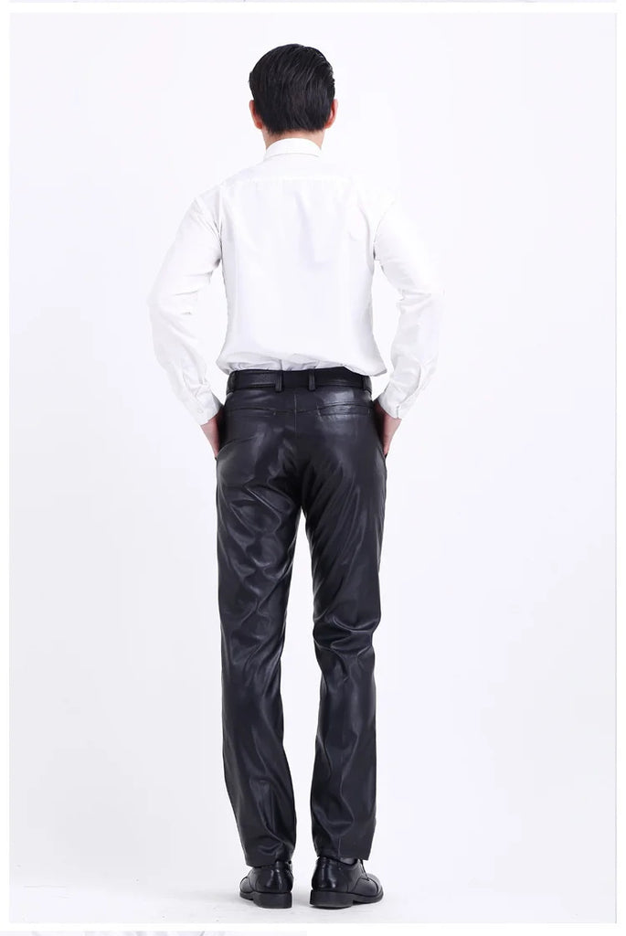 2023 Men's Waterproof Stretch PU Leather Pants - Loose Straight Fit, Thin, Black, Plus Sizes Available