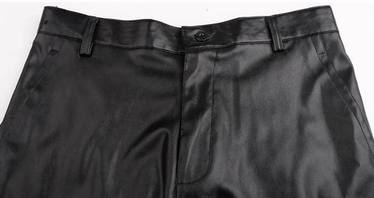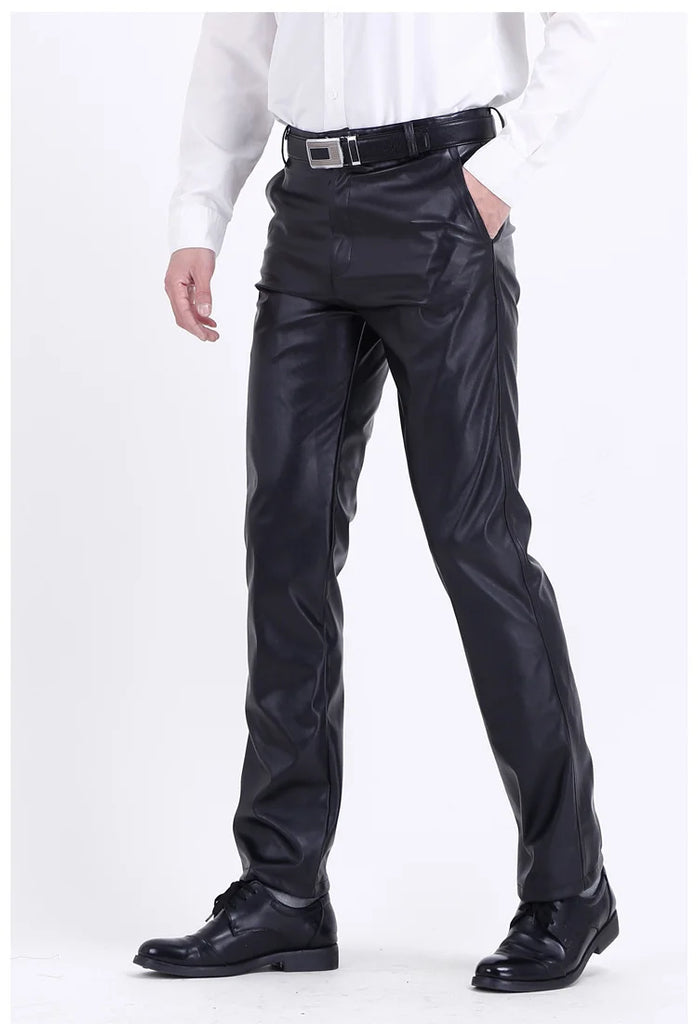Upgrade your wardrobe with these stylish full-length men's faux leather pants, designed for those who appreciate both comfort and fashion. Perfect for casual outings in spring and summer, these pants offer a smart casual style with a high waist and elastic waistband for a relaxed fit. The loose, straight-leg design provides a flattering silhouette, while the midweight material ensures comfort throughout the day.