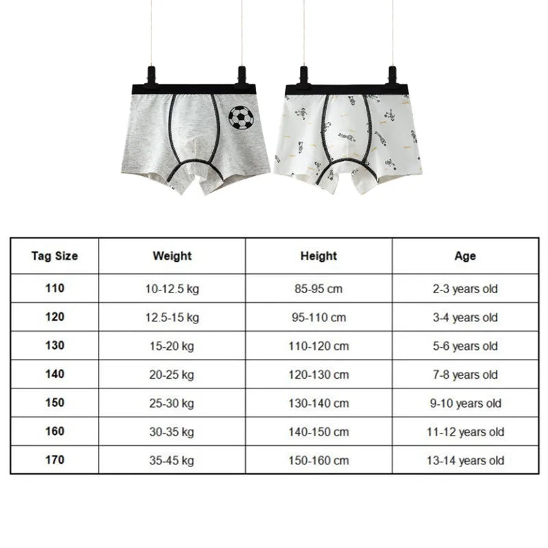 Enhance your child's comfort with our high-quality boys' underwear, designed for ages 2 to 14. Crafted from 95% cotton and 5% spandex, these panties offer a soft, breathable fit for all seasons. Featuring playful cartoon patterns, they provide both style and function, making them perfect for everyday wear. Available sizes cater to a range of heights from 100-160cm and weights from 10-45kg, ensuring a true-to-size fit. Each pack includes two pieces, offering great value for an essential wardrobe item.