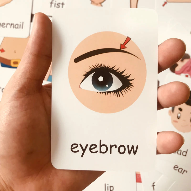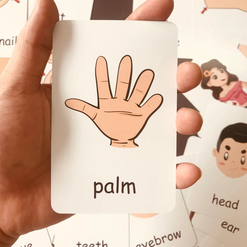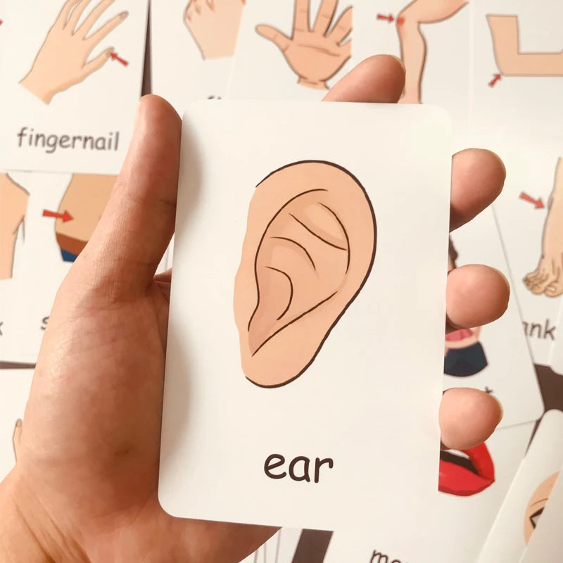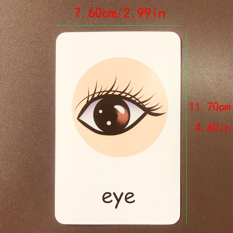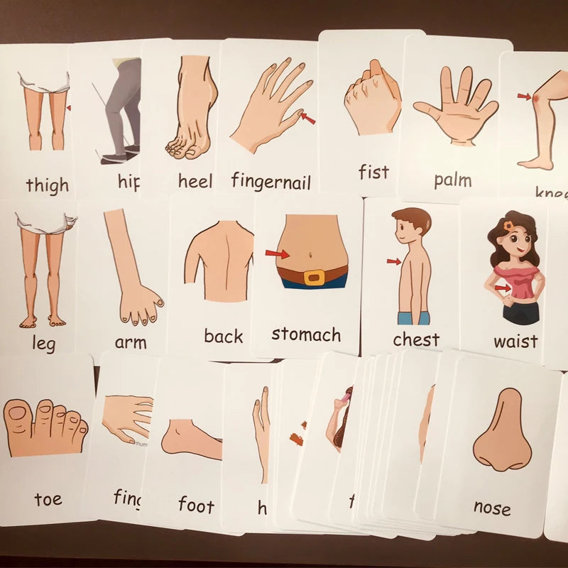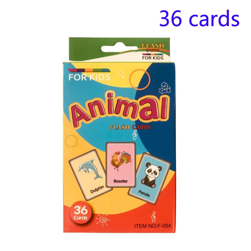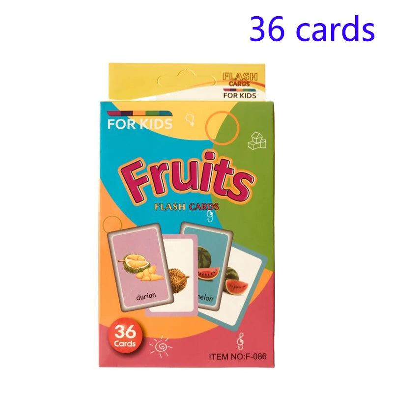 36pcs Double-Sided Flashcards: Body Parts, Animals, Fruits - Montessori Baby Kids Early Learning Educational Cards