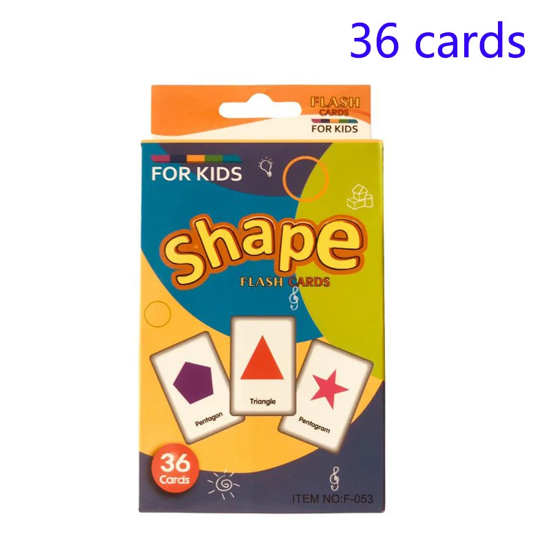 - 36 vibrant cards featuring shapes, animals, and colors.