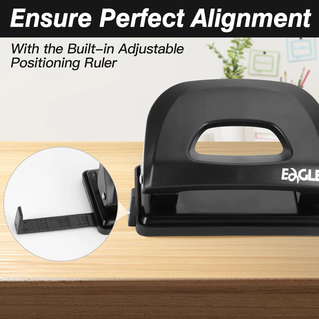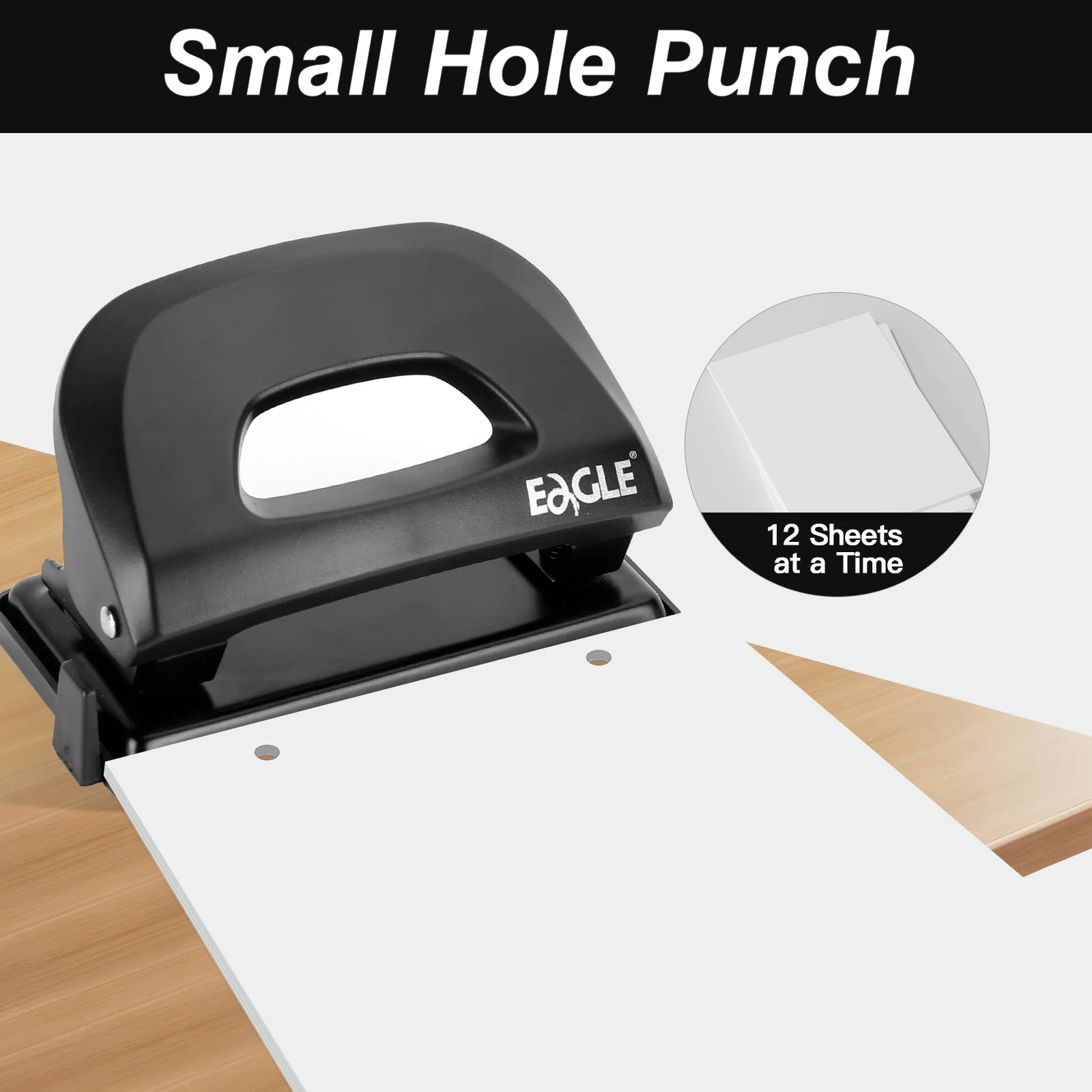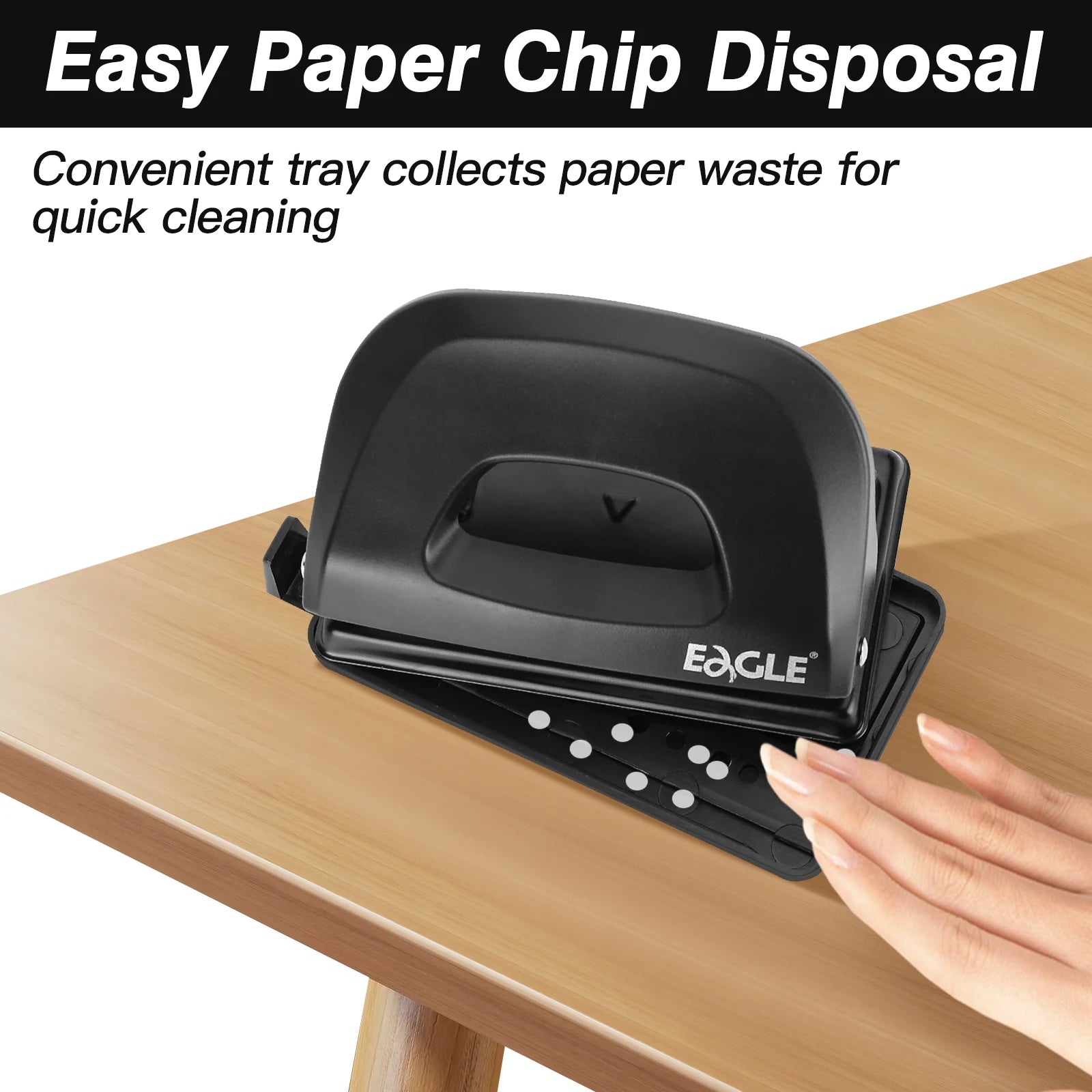 2-Hole Paper Punch, 12-Sheet Capacity, with Chip Tray & Adjustable Guides, Office & School Binding Supplies