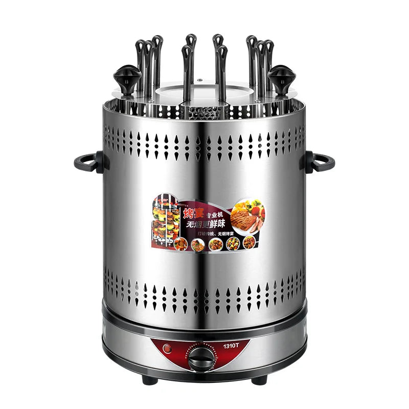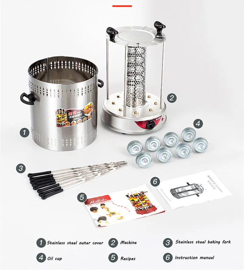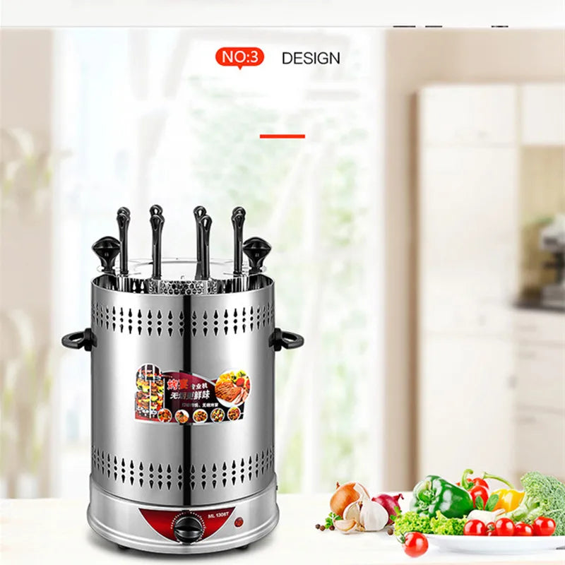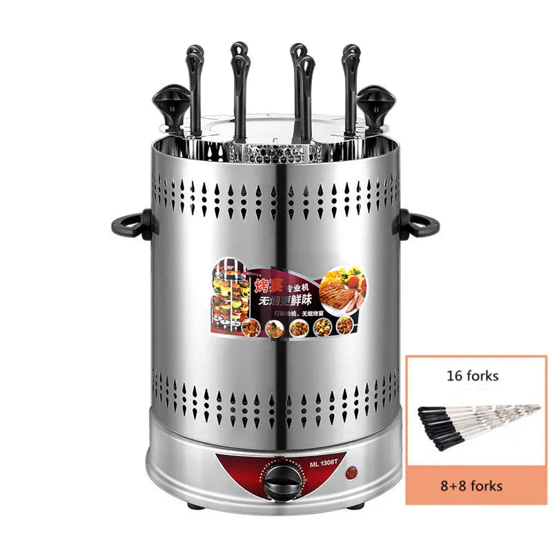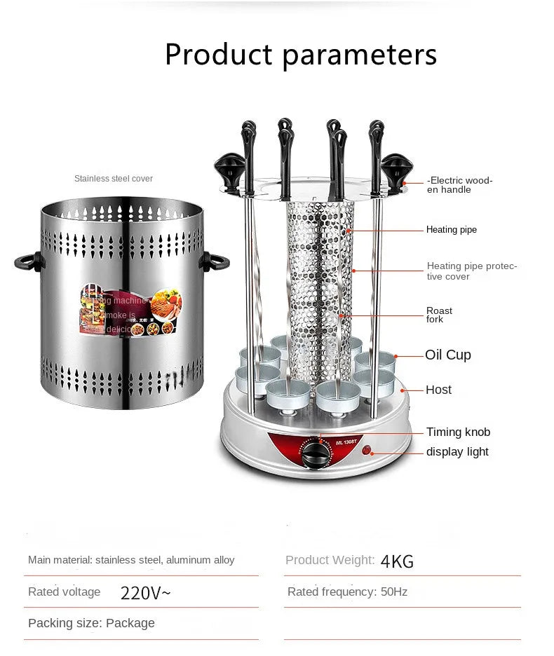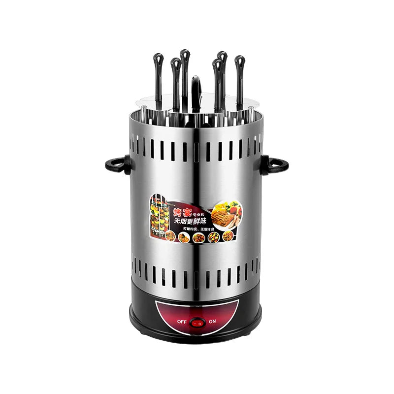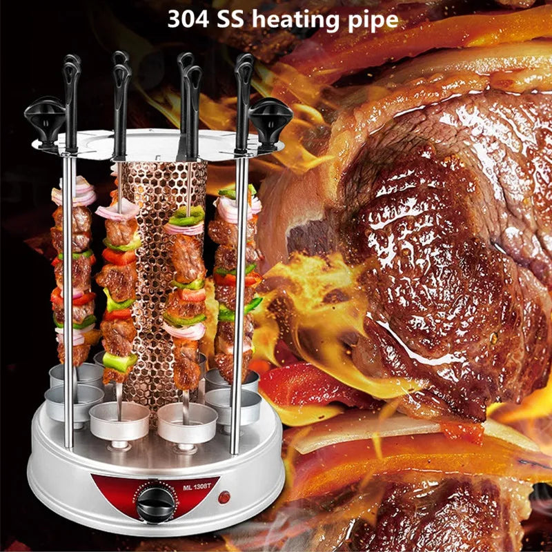 Electric BBQ Grill Automatic Skewers Rotating Vertical Grill Smokeless Timer Mutton Skewer Machine 6/8/10 Sticks Barbecue Tool