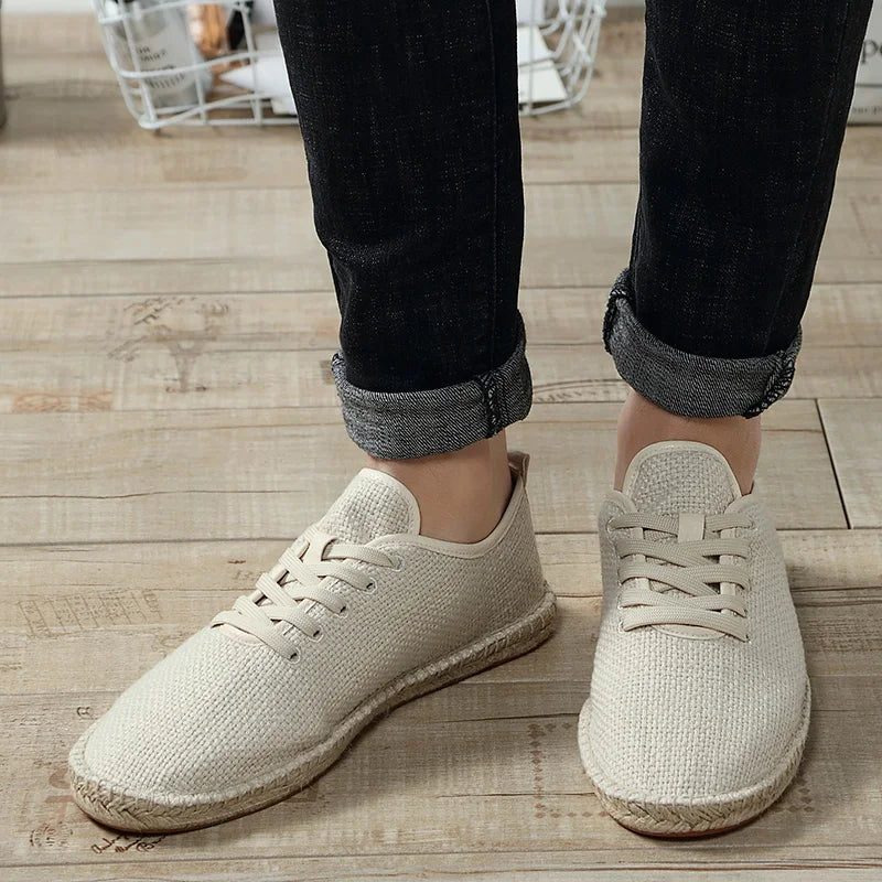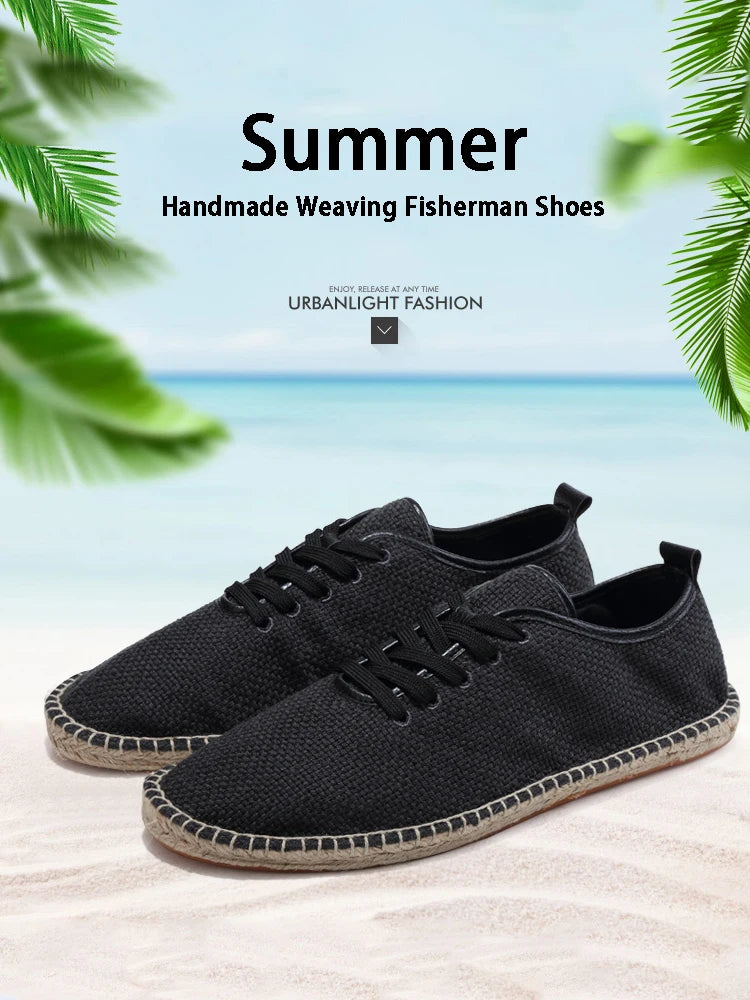 2023 Summer Men's Linen Espadrilles Casual Handmade Weaving Flats, Large Size 47
