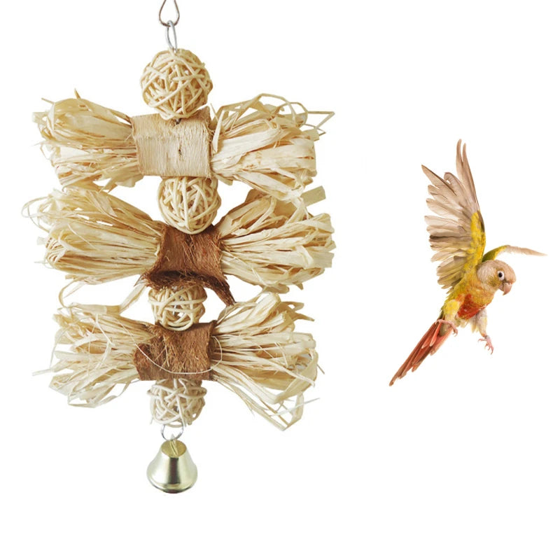 Give your bird a delightful playtime experience with the Nature Loofah Grass Toy. Made from natural plant fibers, this safe and non-toxic toy is perfect for birds of all sizes, encouraging playful chewing and foraging. The easy-to-hang design features an engaging bell, adding an extra element of fun to their environment. Ideal for parrots, macaws, cockatoos, parakeets, budgies, and lovebirds, it's an essential addition to any bird cage.