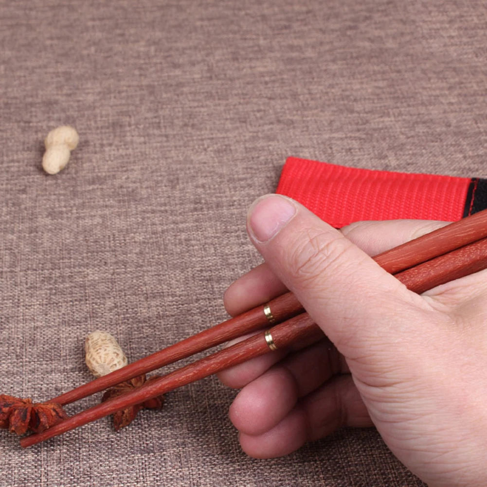 Elevate your dining experience with these exquisite foldable chopsticks, crafted from luxurious red sandalwood and copper. Marrying elegance with practicality, they feature an ergonomic grip that enhances any meal. Their lightweight and portable design makes them perfect for outdoor dining or sophisticated meals on the go. After use, simply fold and store them in the included stylish bag for easy storage.