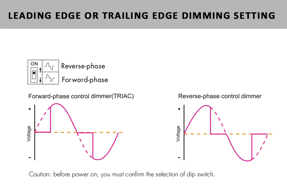 - Customizable: Leading/trailing edge dimming via dip switch.