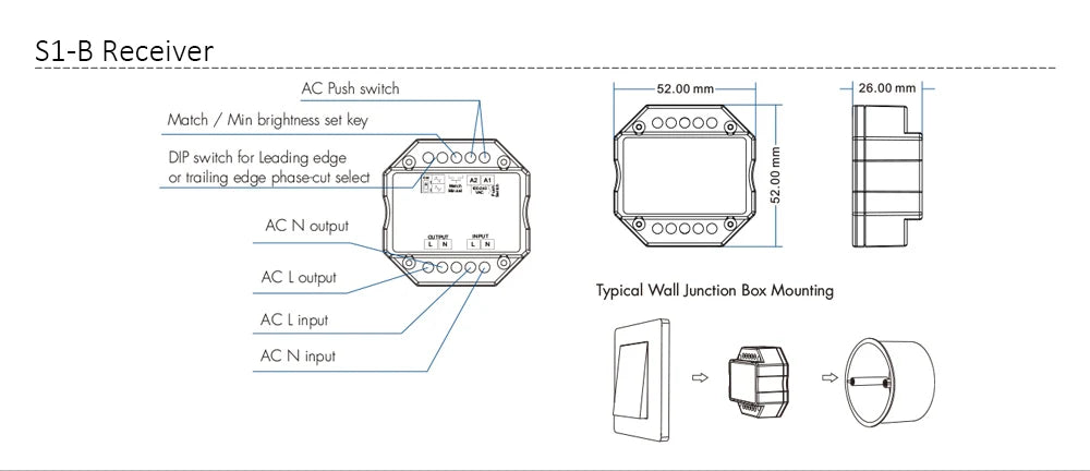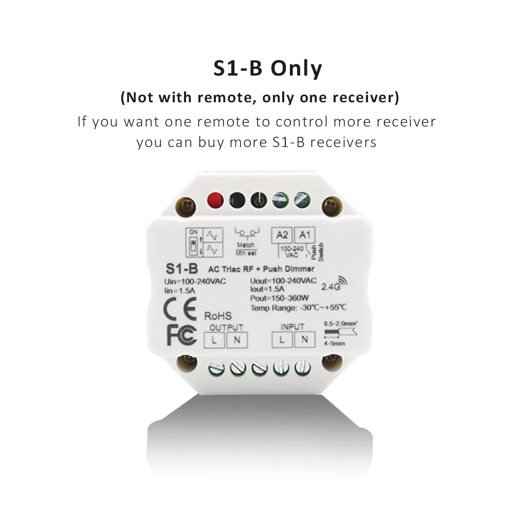 Embrace flexibility with our recommended load connections—from dimmable downlights to varied-wattage LED drivers. Whether you choose the receiver alone or paired with the remote, setup is simple and intuitive. Enjoy customizable light transitions with a selectable 3-second fade time for a polished finish.