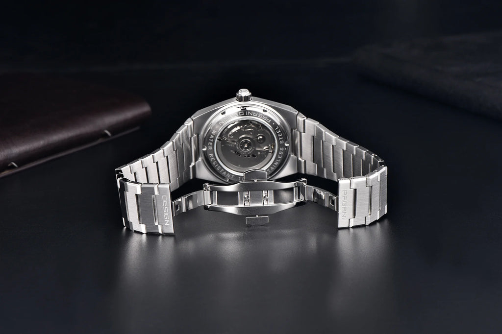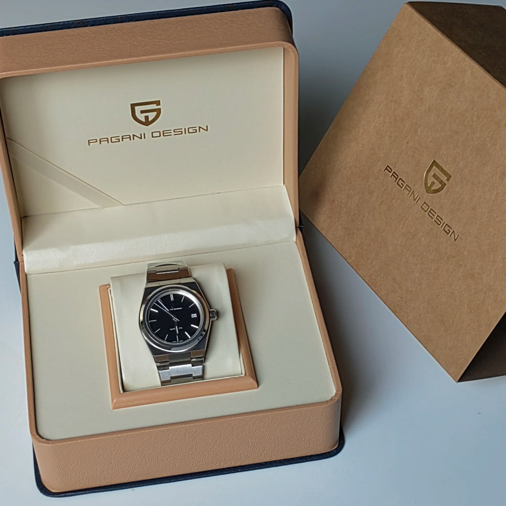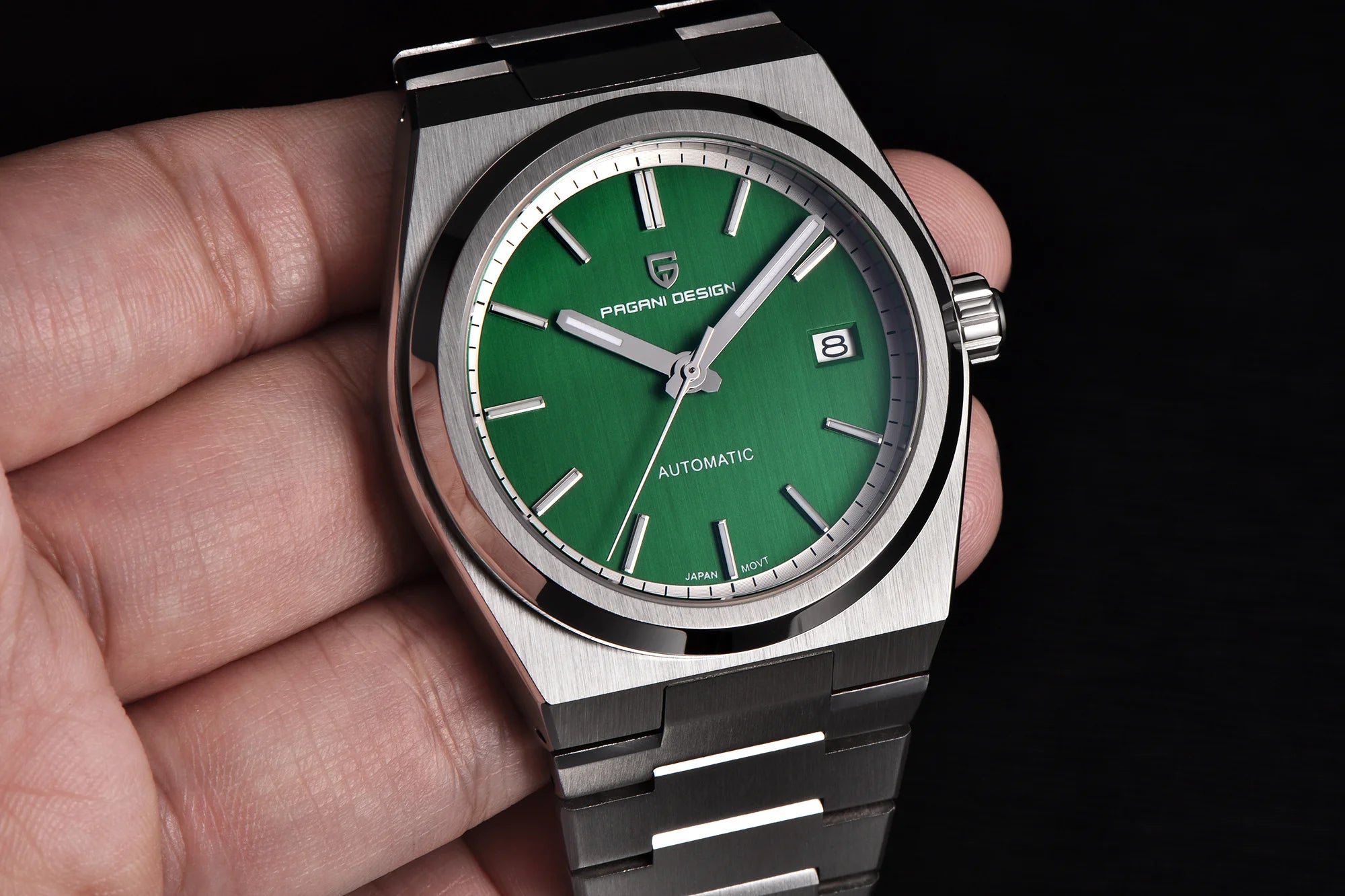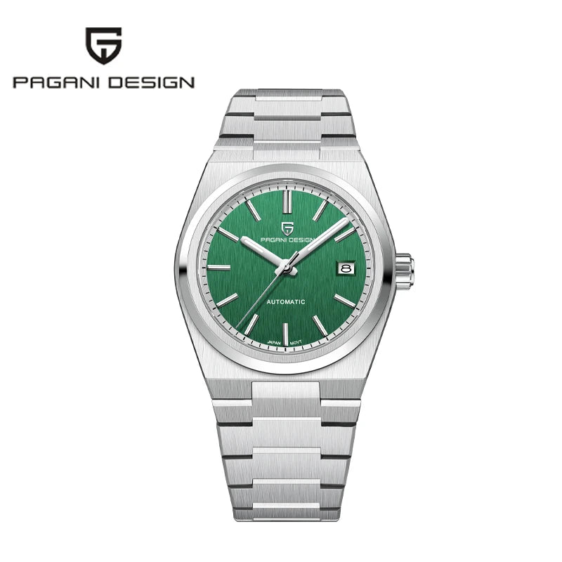 Choose from three classic dial colors: Black, Blue, or Green, each with a folding clasp featuring the distinctive Pagani Design logo. With a maximum circumference of 240mm and a case thickness of 12mm, this watch provides a comfortable fit and striking presence. Packaged in a stylish paper box, it makes for a perfect gift or personal indulgence.