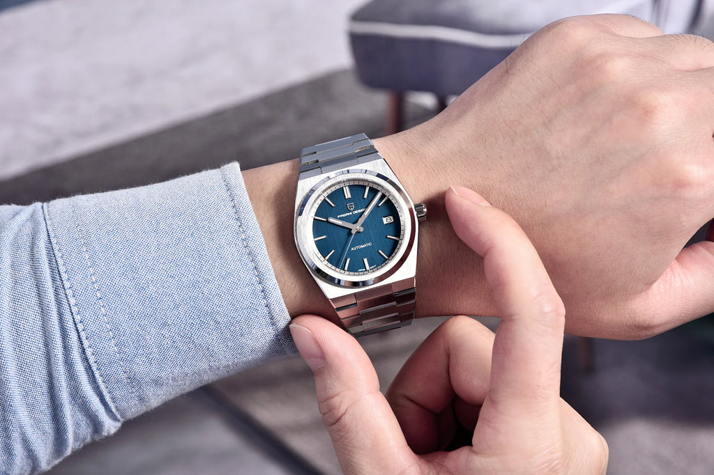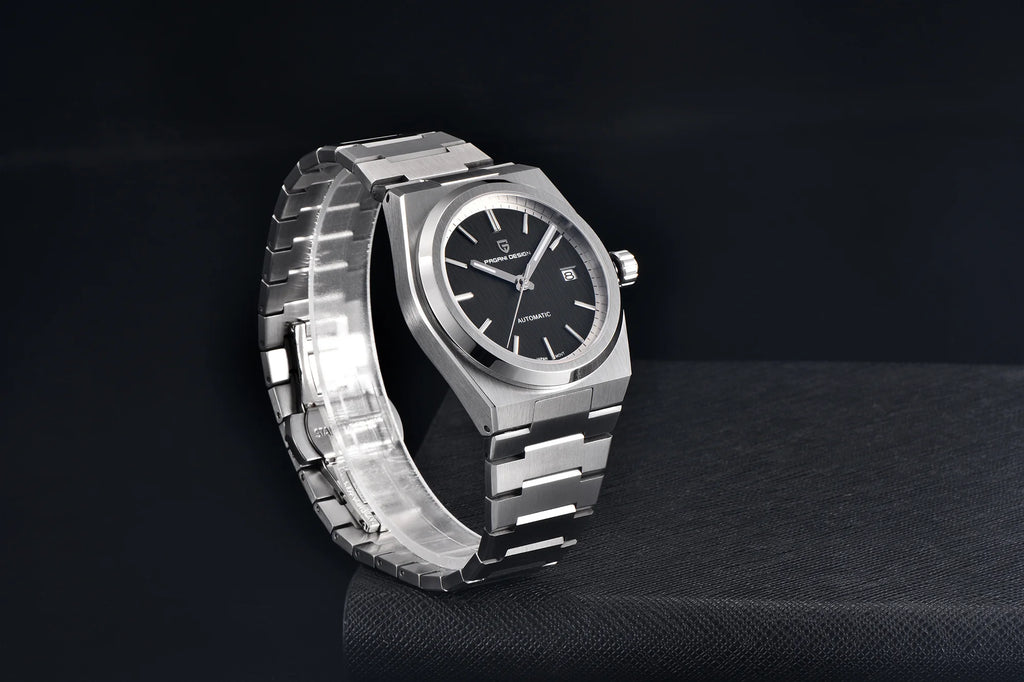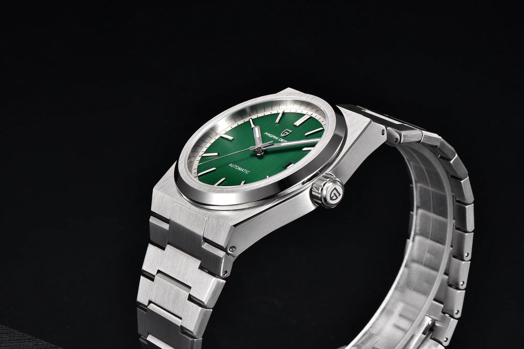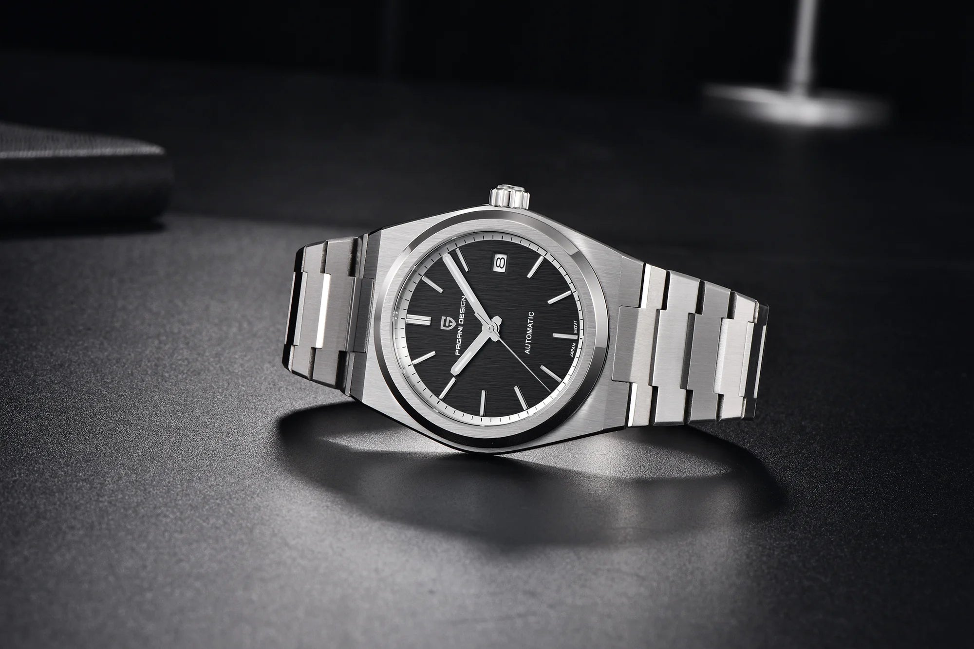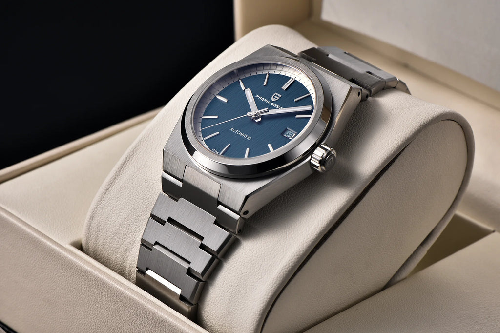 Discover the elegant PD1753 Men's Mechanical Wristwatch by Pagani Design, a perfect blend of sophistication and functionality. Crafted with a sleek stainless steel case and band, this watch is designed for the modern business professional. The 38mm round case features a sapphire crystal dial window, offering a luxurious and durable finish.