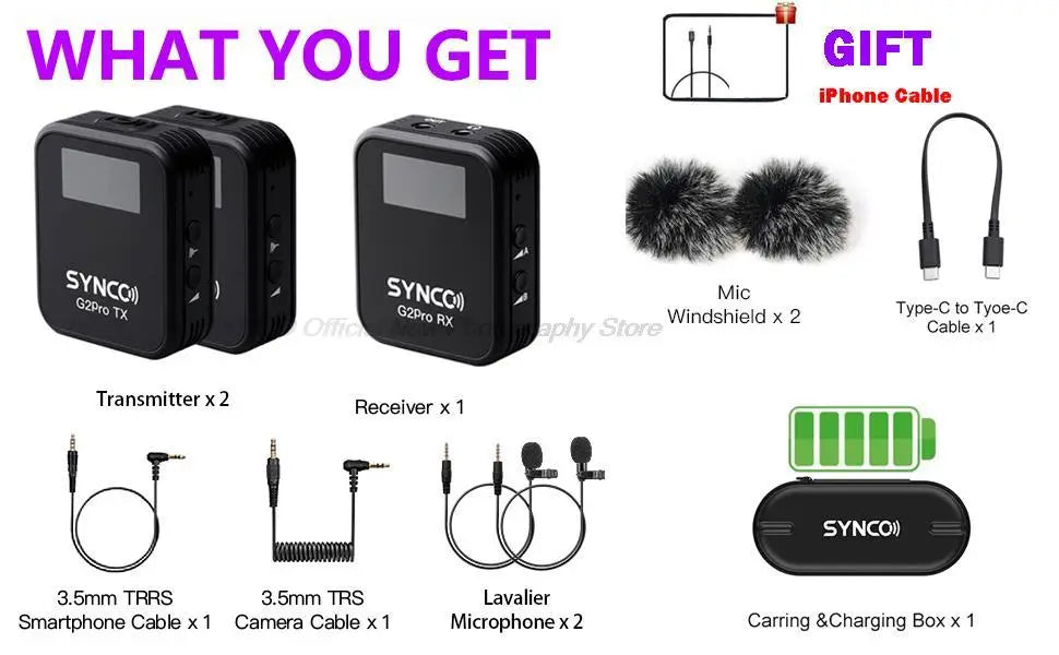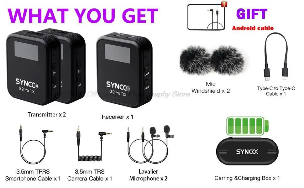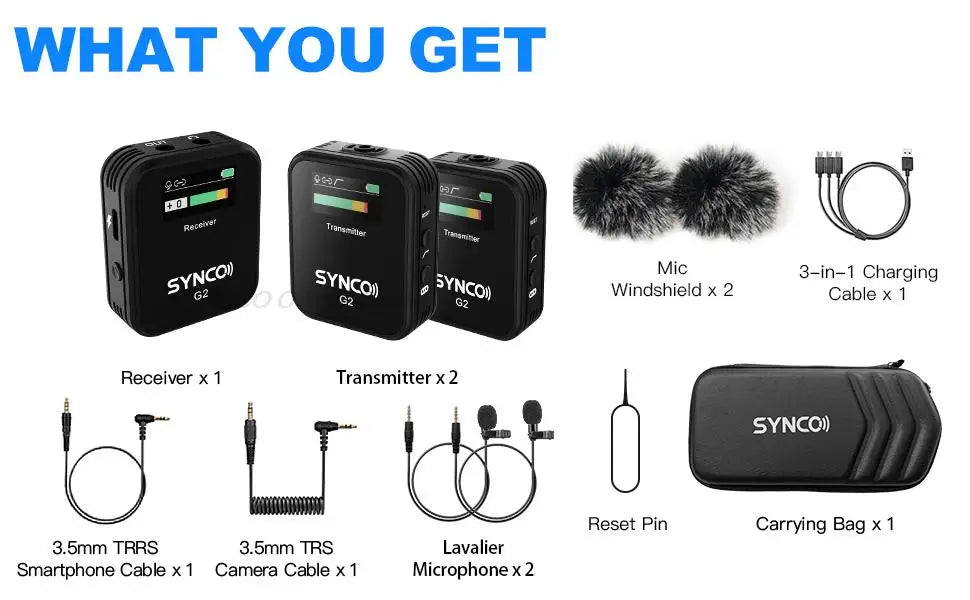 This comprehensive kit includes two transmitters, one receiver, and optional accessories such as a charging case, mic windshields, external lav mics, and more, all contributing to an effortless user experience whether you're working in the studio or out in the field.