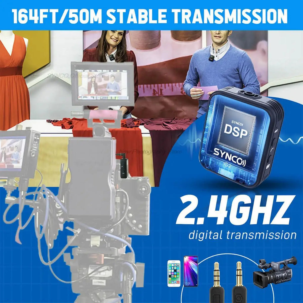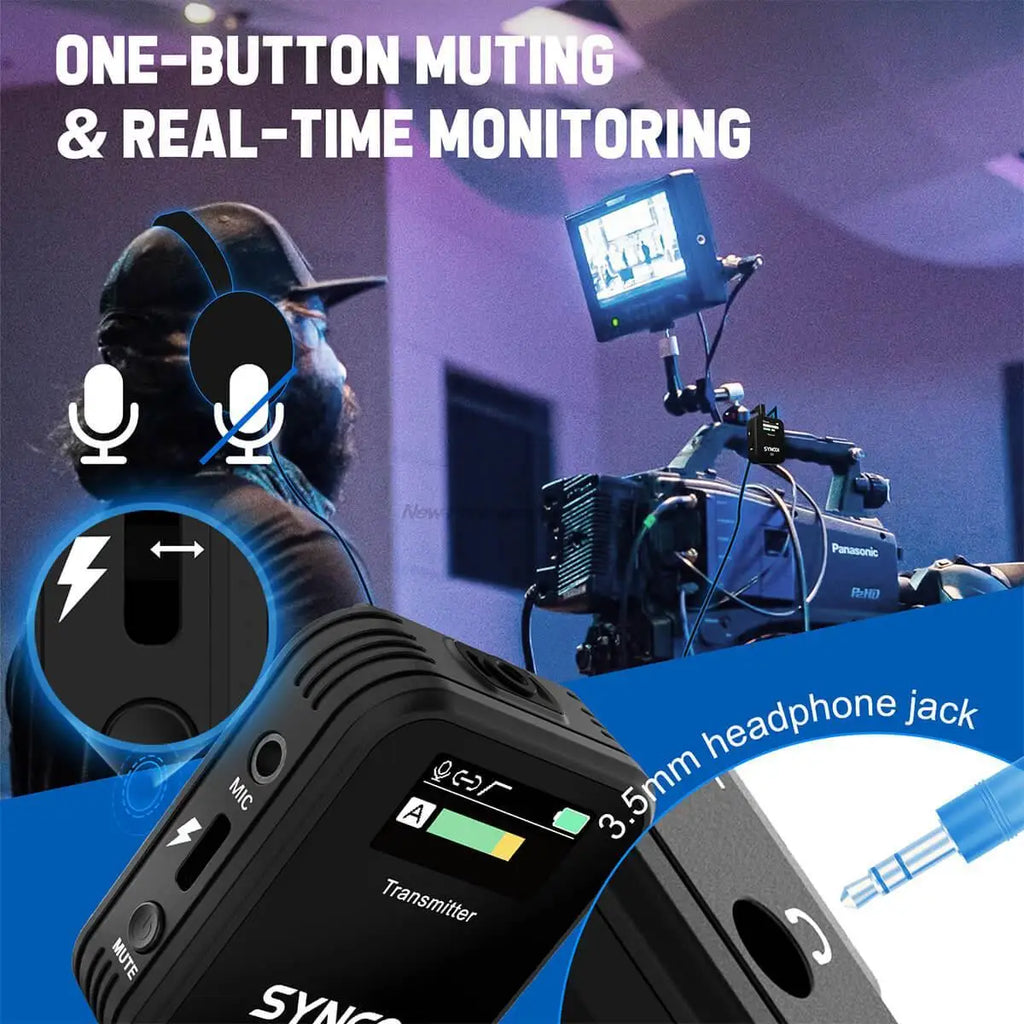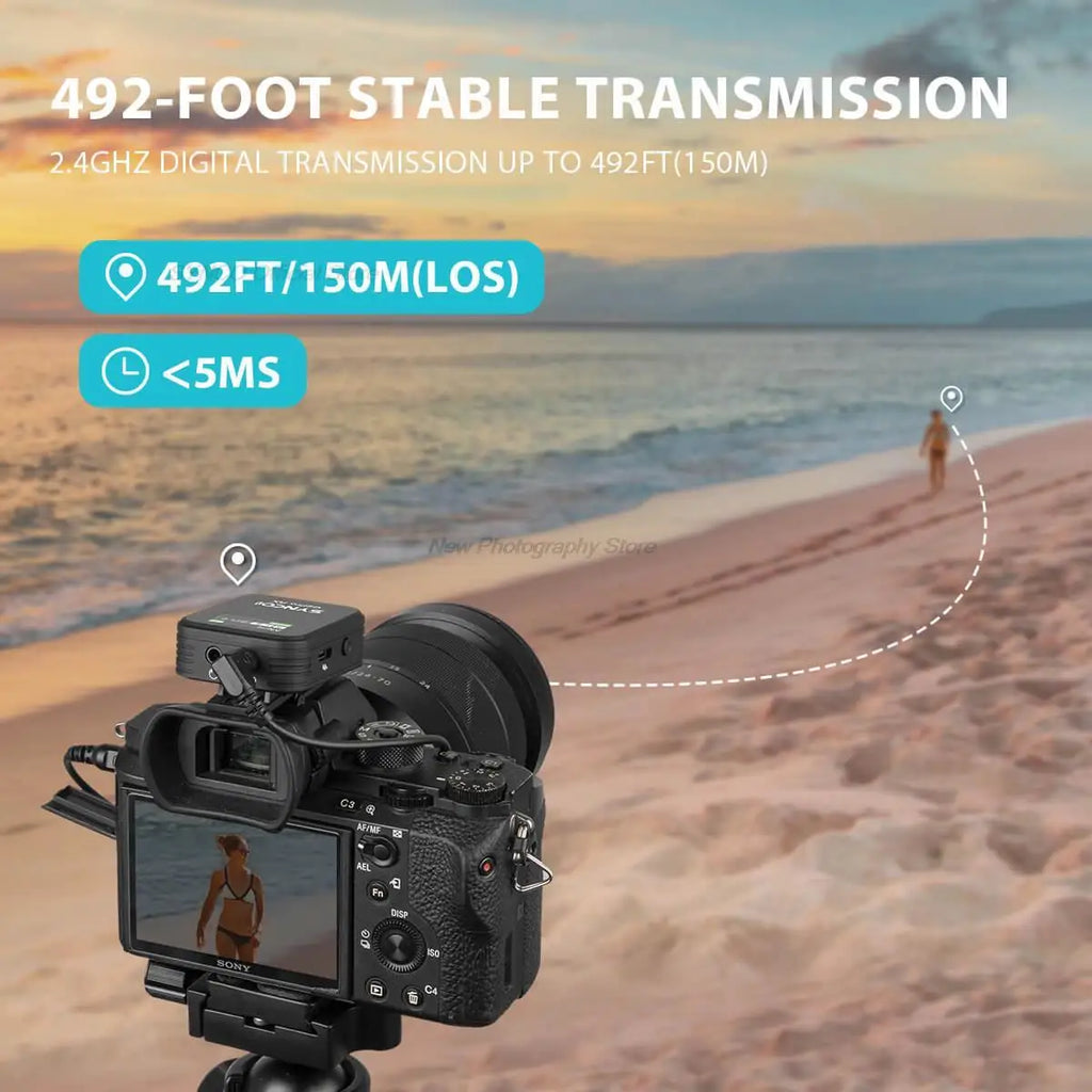 Experience unmatched audio clarity with our Professional Ultracompact Digital Wireless Microphone System, designed specifically for mirrorless and DSLR cameras. This versatile system excels in a variety of settings, from interviews and vlogging to professional studio use. The dual transmitters feature built-in microphones and can easily connect to external lav mics, offering flexibility depending on your recording needs.