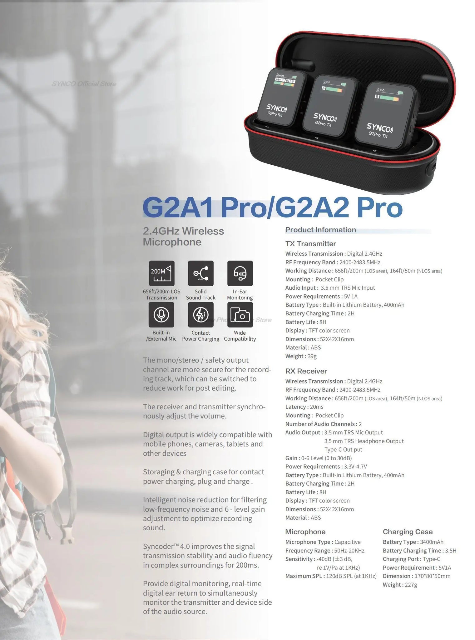 2.4G Wireless Lavalier Microphone Pro for Smartphone Camera Video Studio Streaming YouTube Vlog - G2 A2 G2a2 Vs Rode Go II