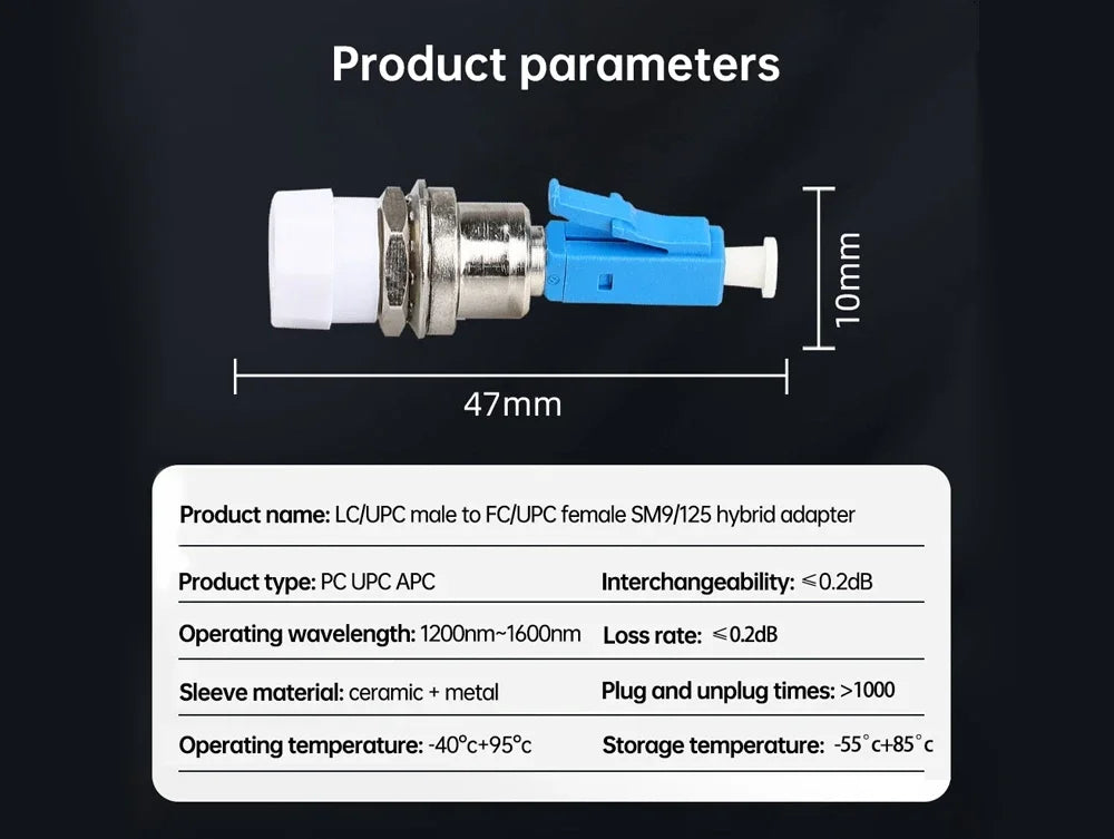 - Product Name: LC/UPC Male to FC/UPC Female SM9/125 Hybrid Adapter
