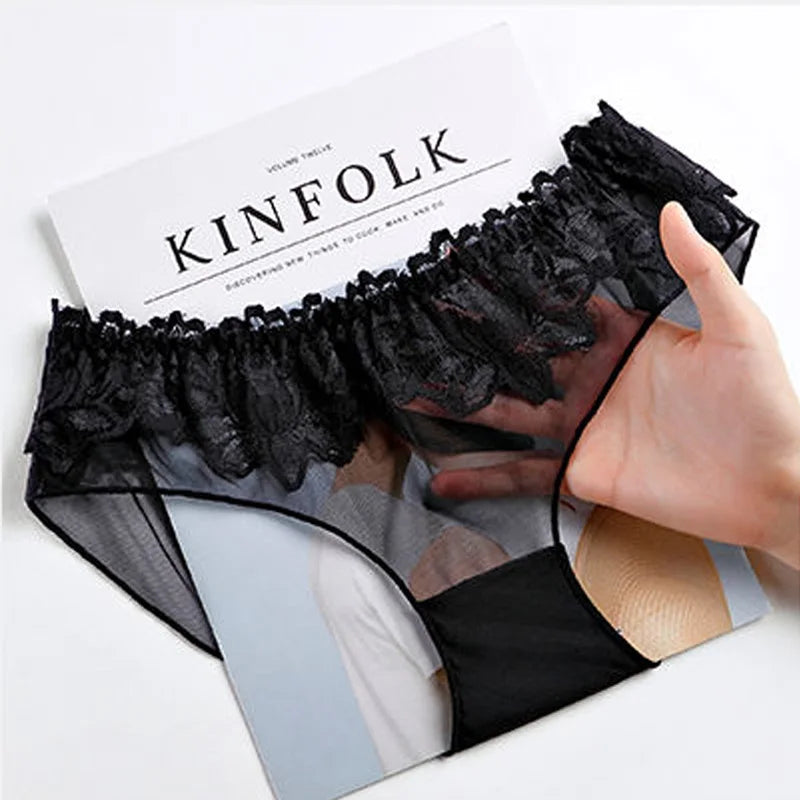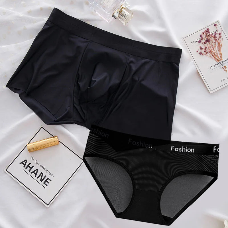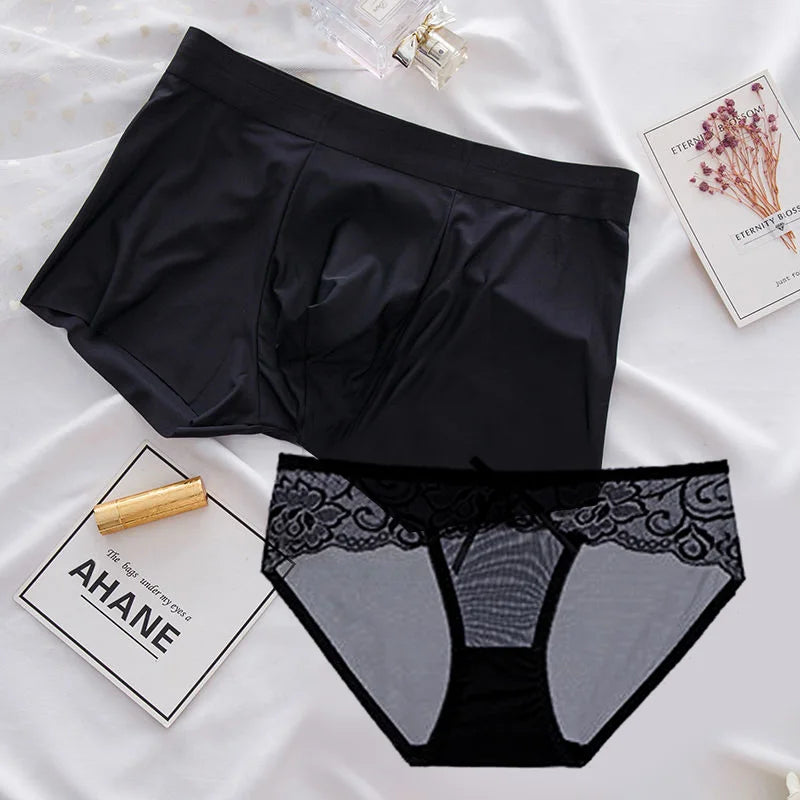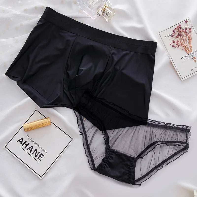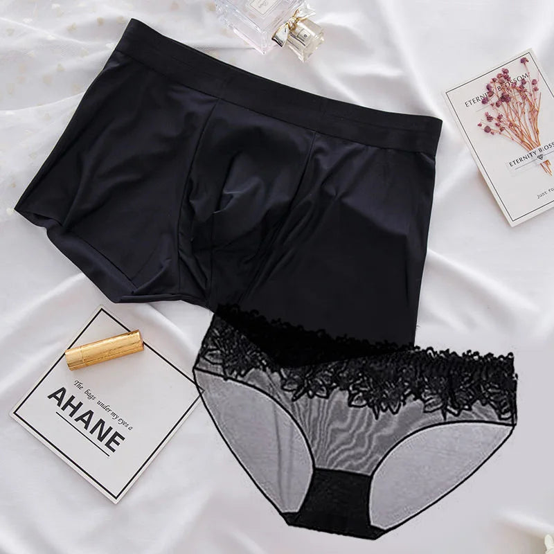 1pc Sexy Lace Transparent Couple Panties Cozy Ice Silk Lingerie Men Women Underwear