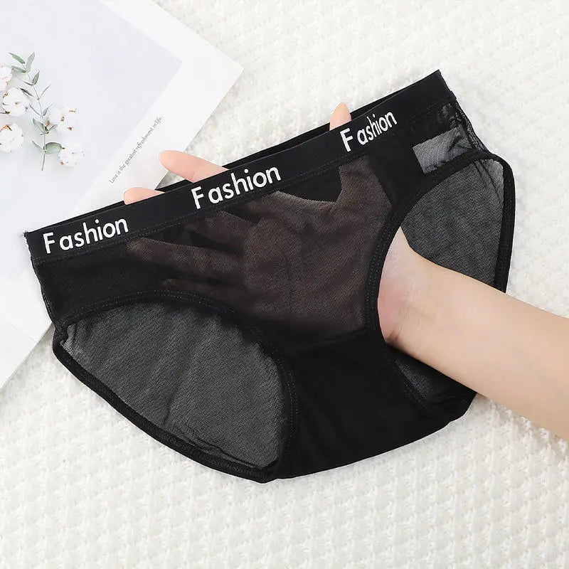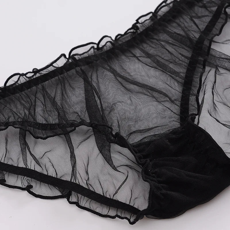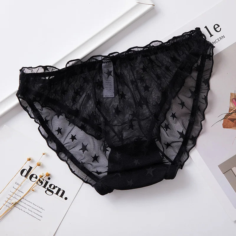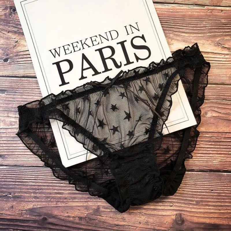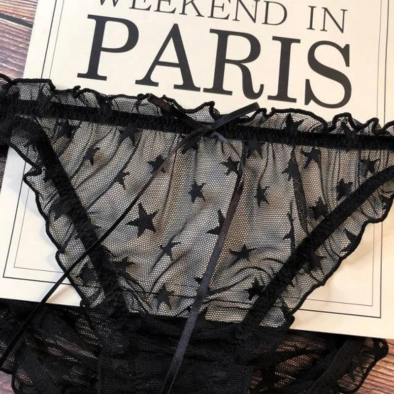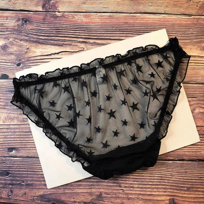 1pc Sexy Lace Transparent Couple Panties Cozy Ice Silk Lingerie Men Women Underwear