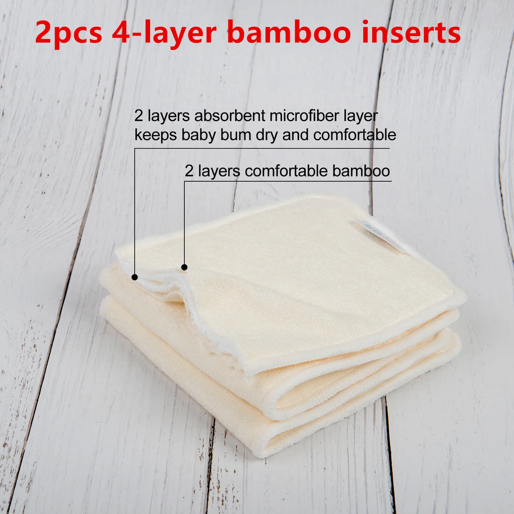 - 4-Layer Bamboo Inserts: Features two outer layers of bamboo with two inner microfiber layers, offering enhanced absorption and natural softness.