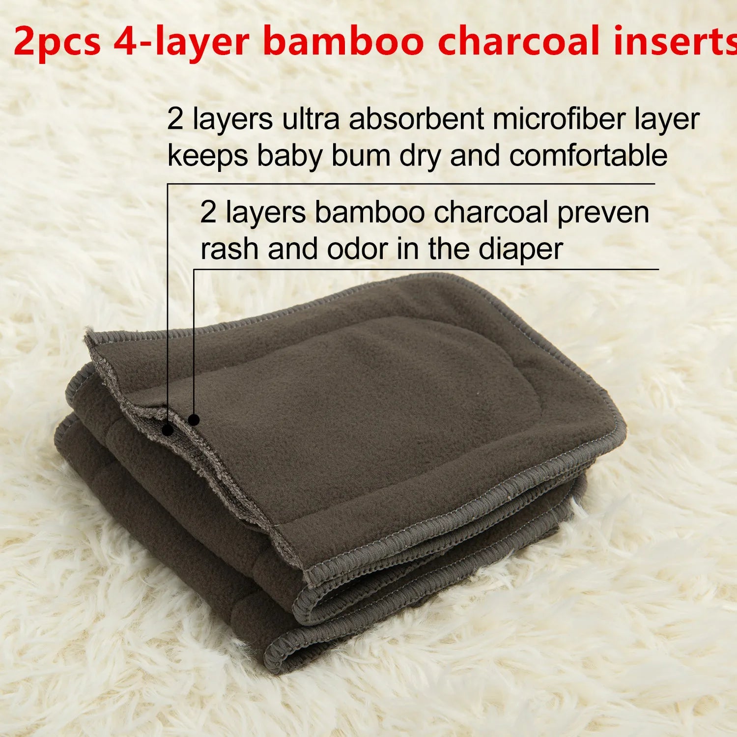 - 4-Layer Bamboo Charcoal Inserts: Combines two outer layers of bamboo charcoal with two inner microfiber layers for superior absorption and deodorization.