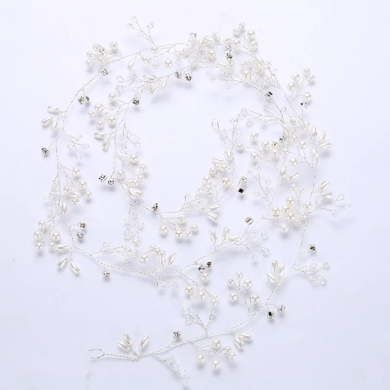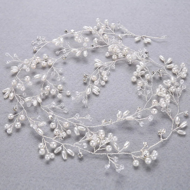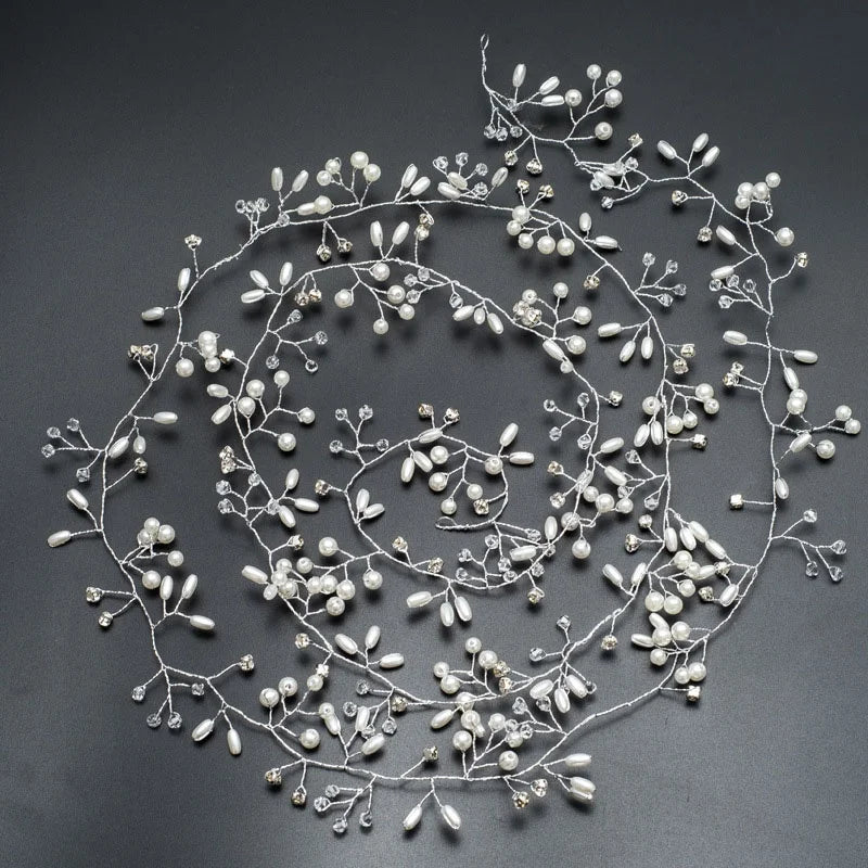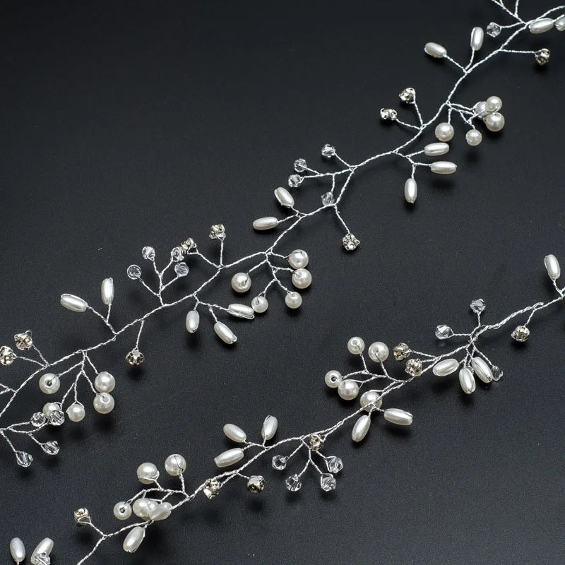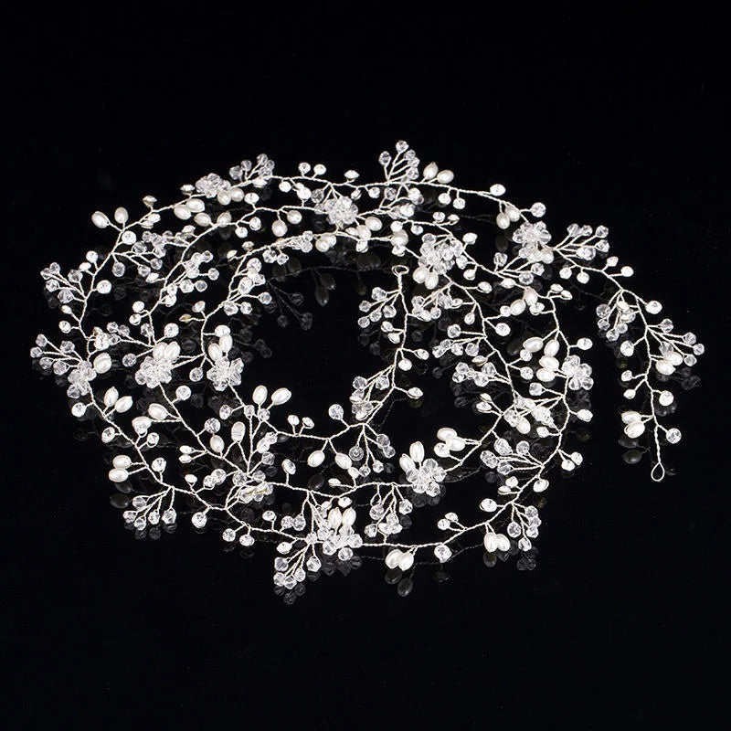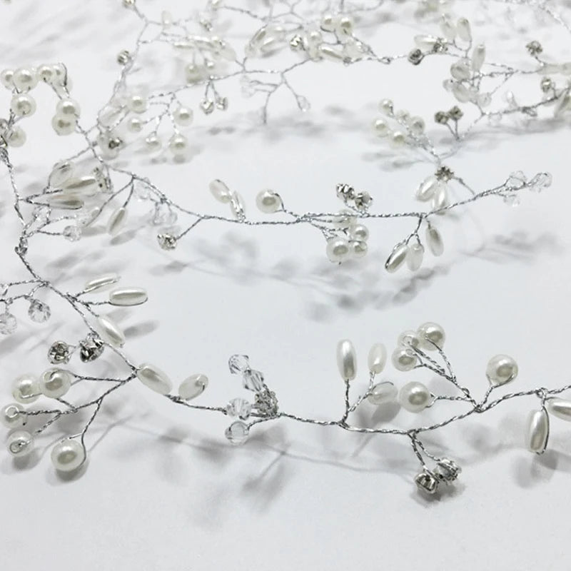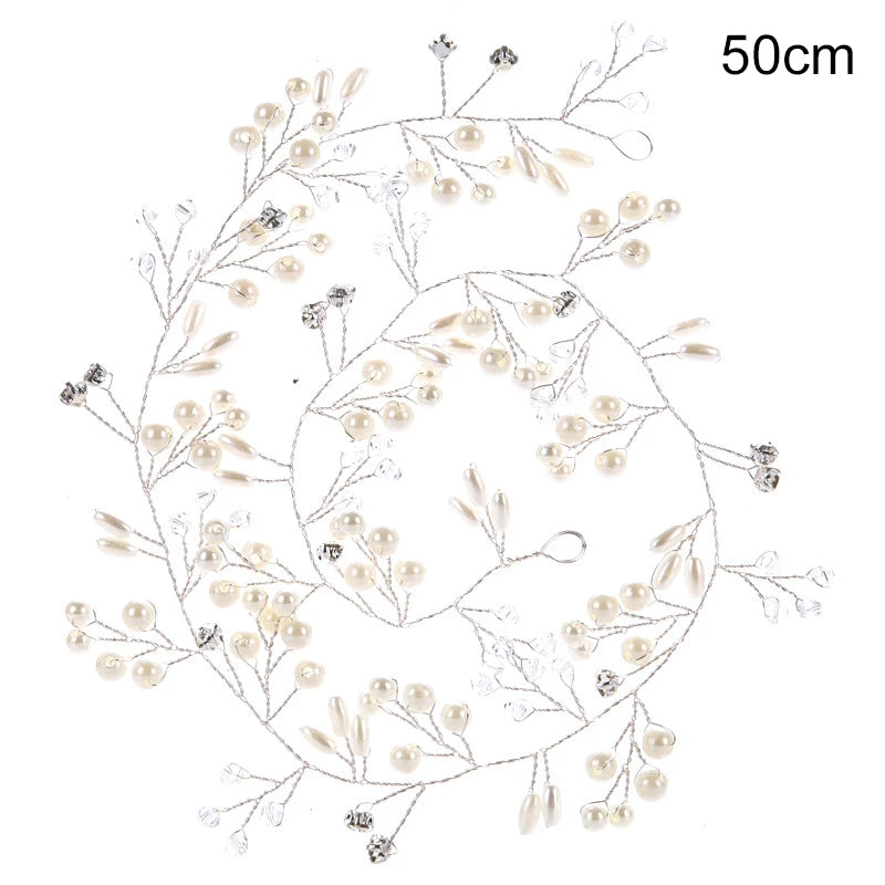 Bridal Crystal Pearl Hair Band, 35/50cm Wedding Headpiece, Beaded Headdress Hair Accessories