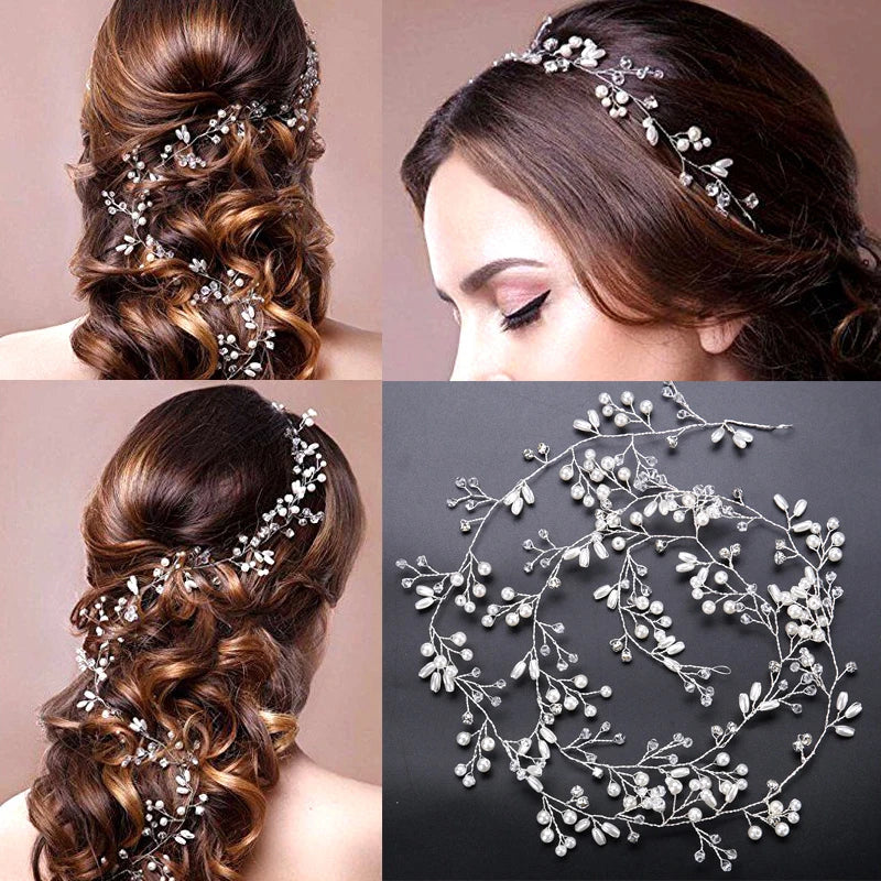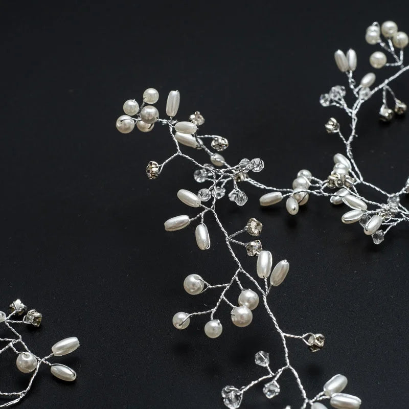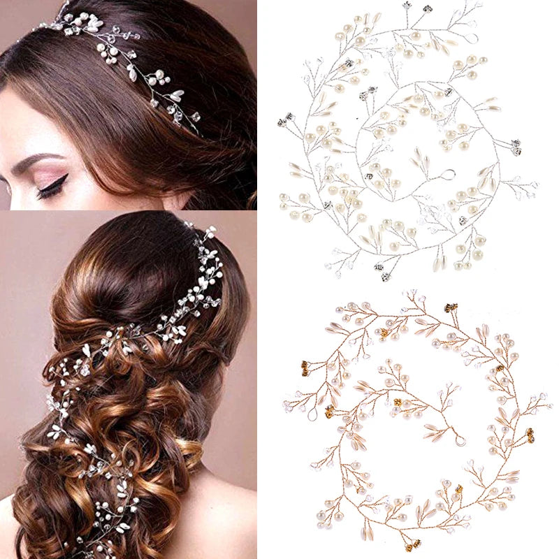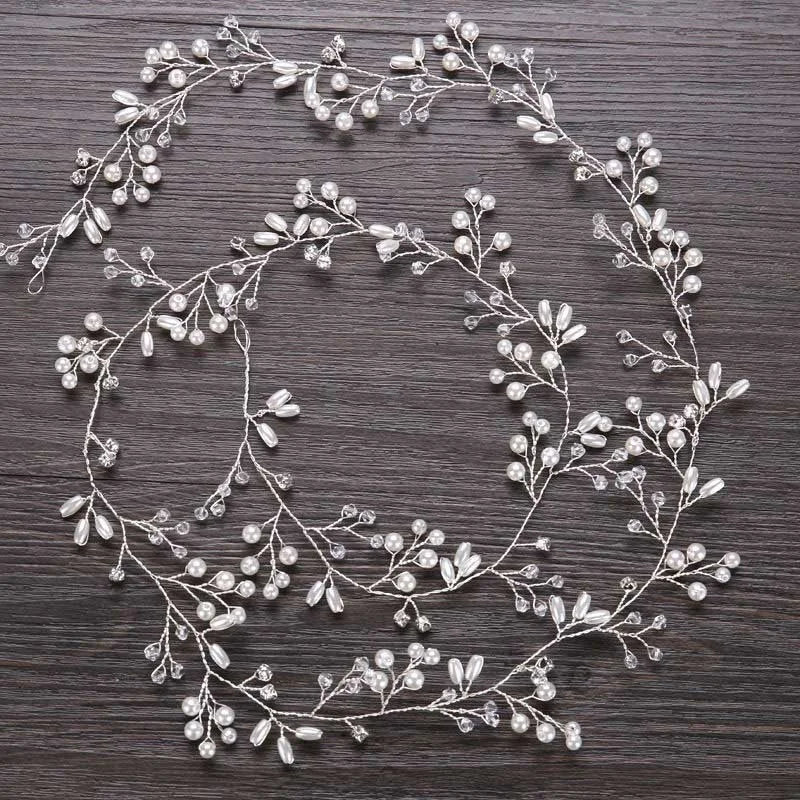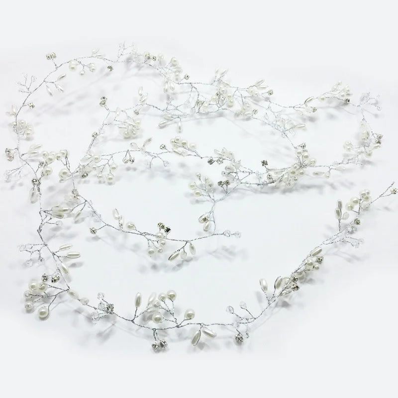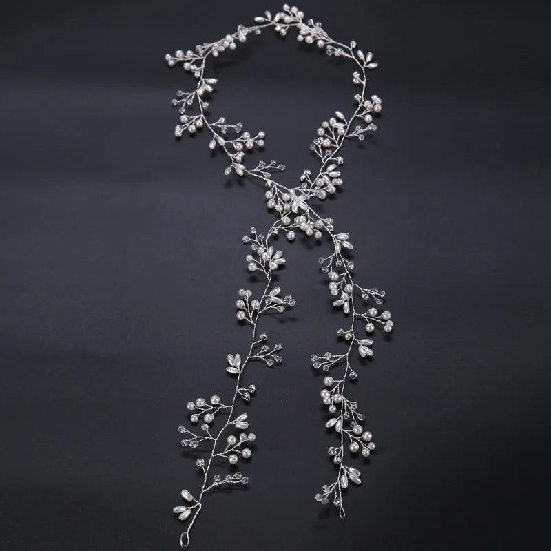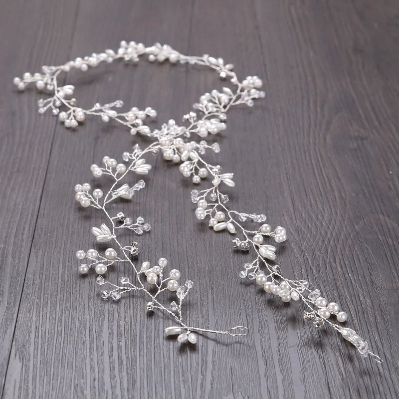 Bridal Crystal Pearl Hair Band, 35/50cm Wedding Headpiece, Beaded Headdress Hair Accessories