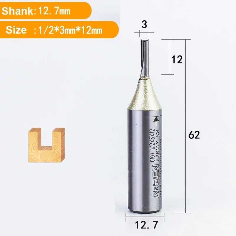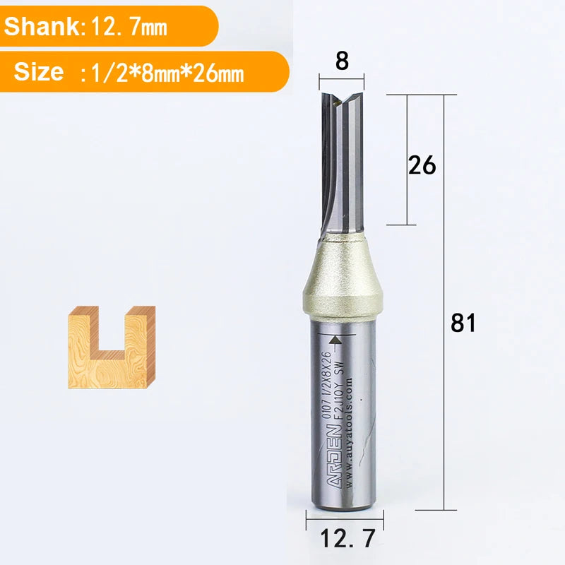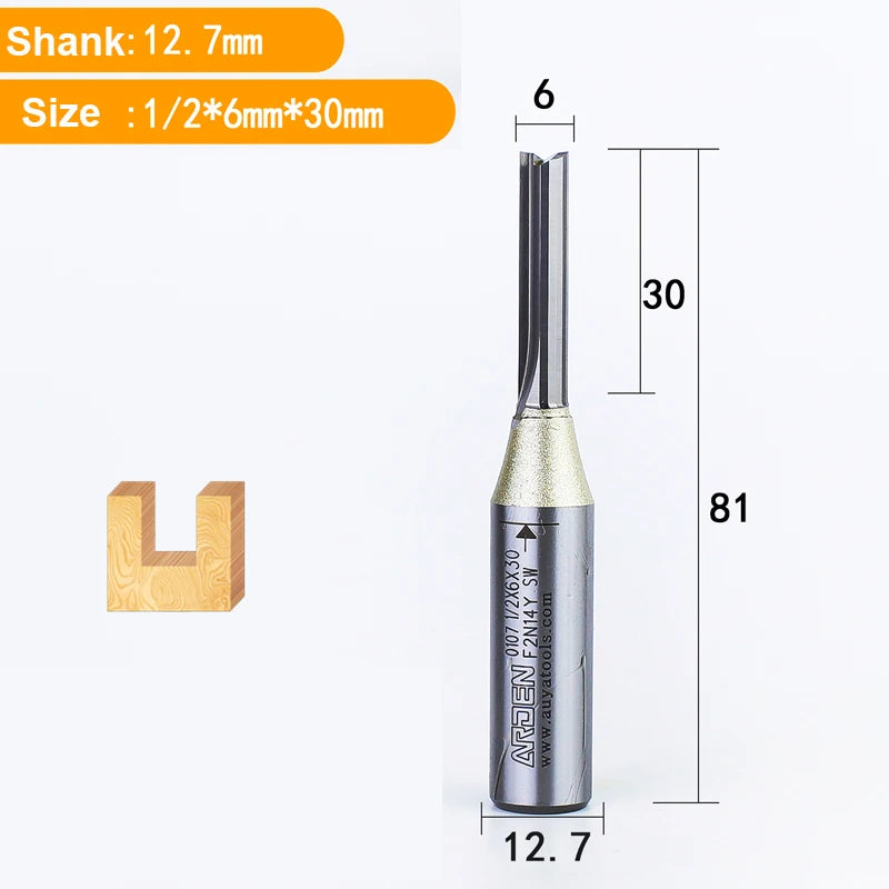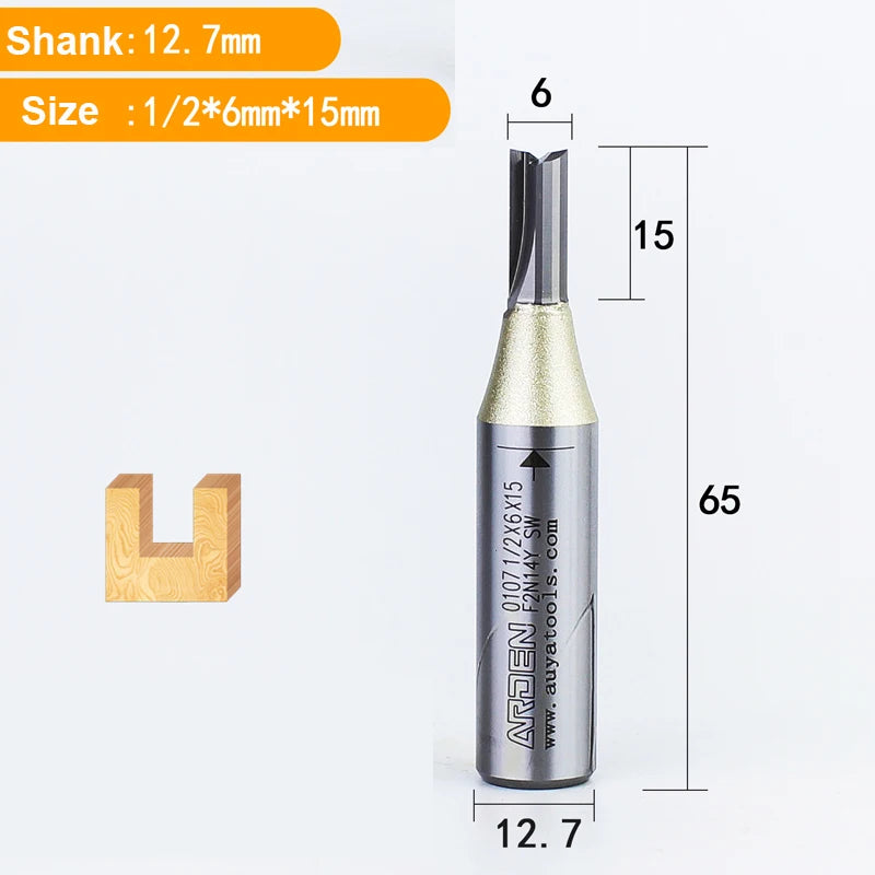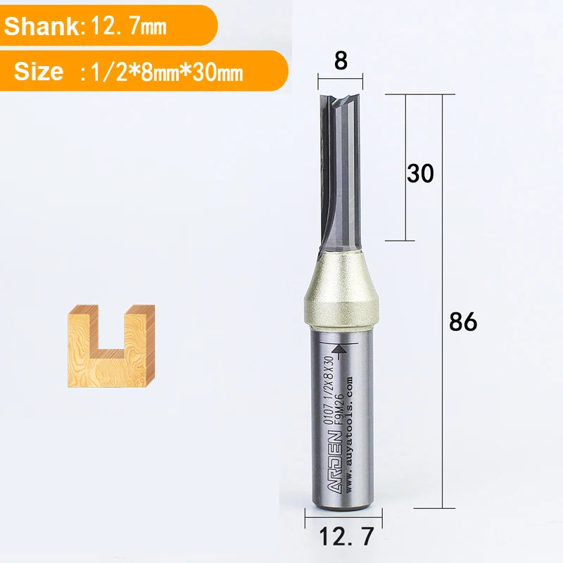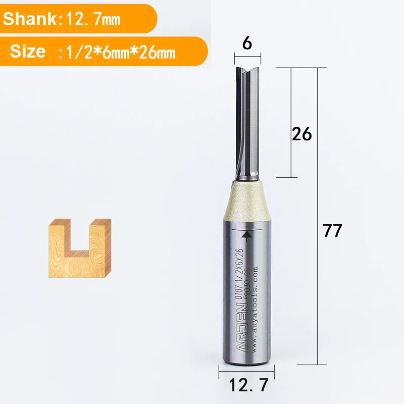 2-Flute TCT Straight End Mill 1/2" Shank CNC Carbide Router Bit for Wood, MDF, Plywood, Chipboard