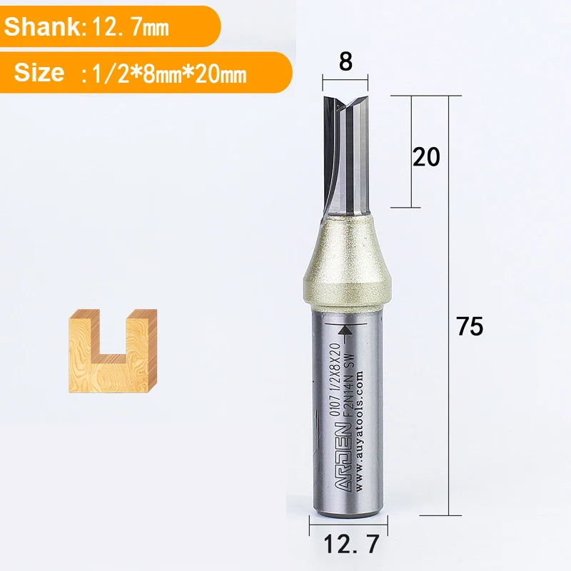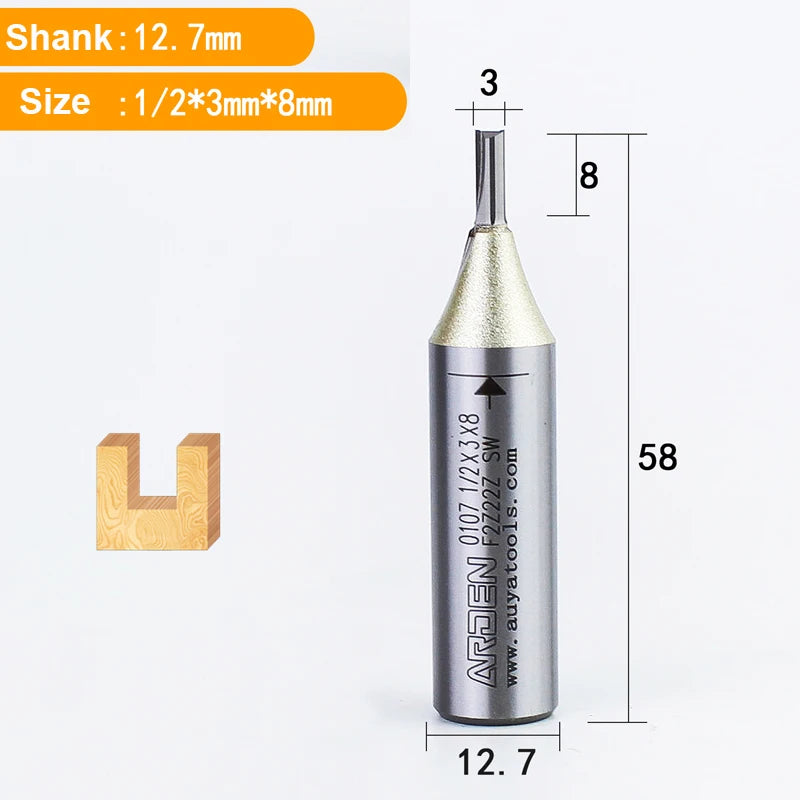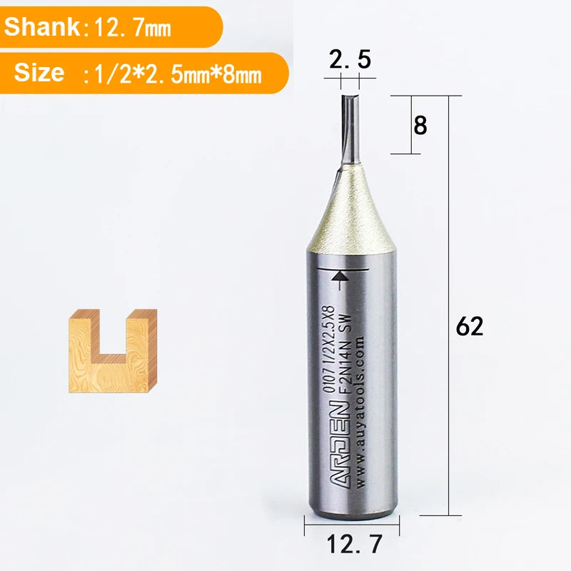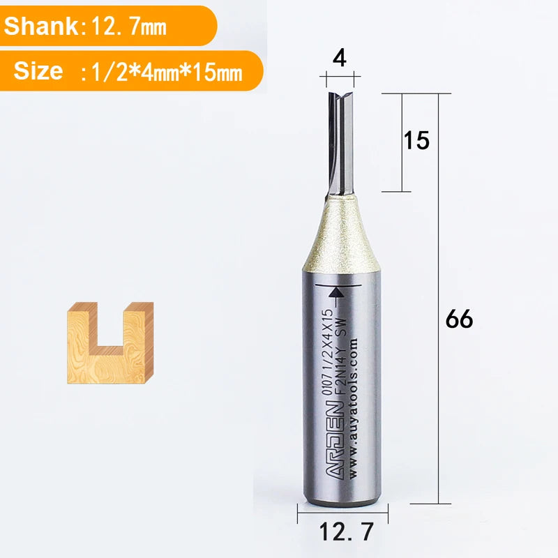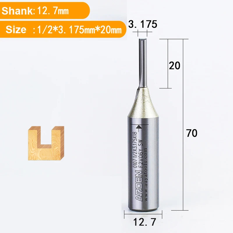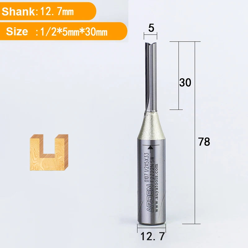 2-Flute TCT Straight End Mill 1/2" Shank CNC Carbide Router Bit for Wood, MDF, Plywood, Chipboard