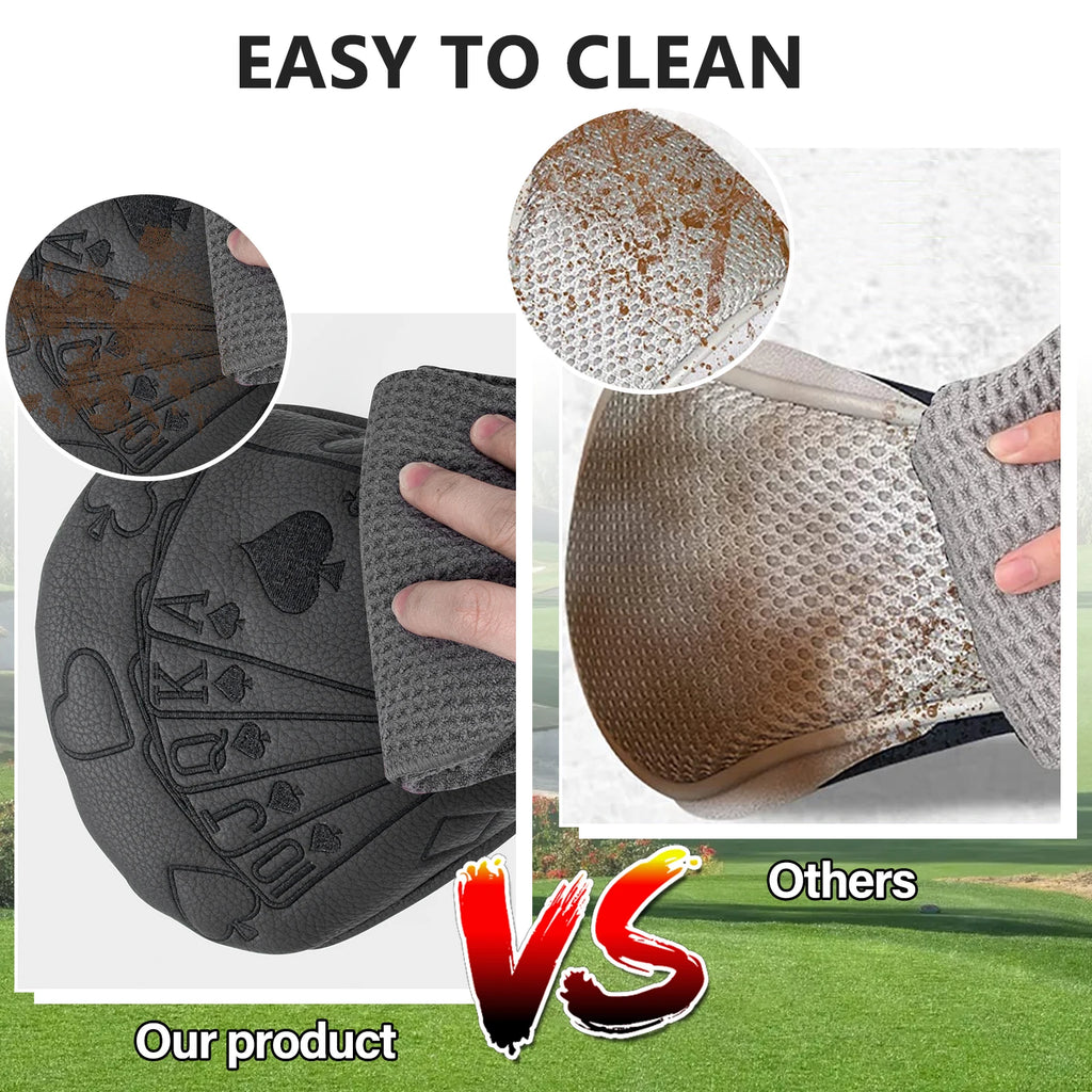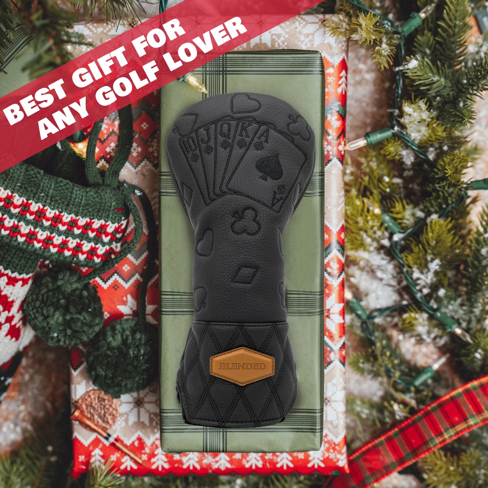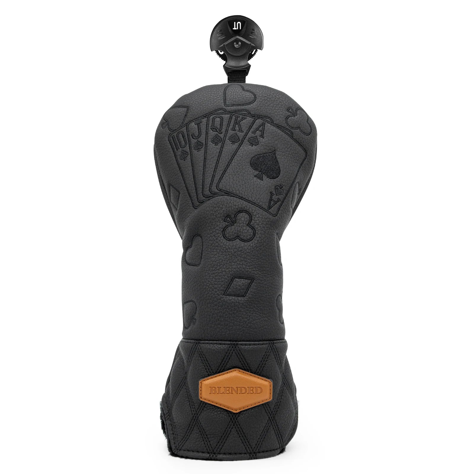 Black Poker Golf Headcovers Set - Driver, Fairway, Hybrid, 3 Wood Covers, Embroidered Design