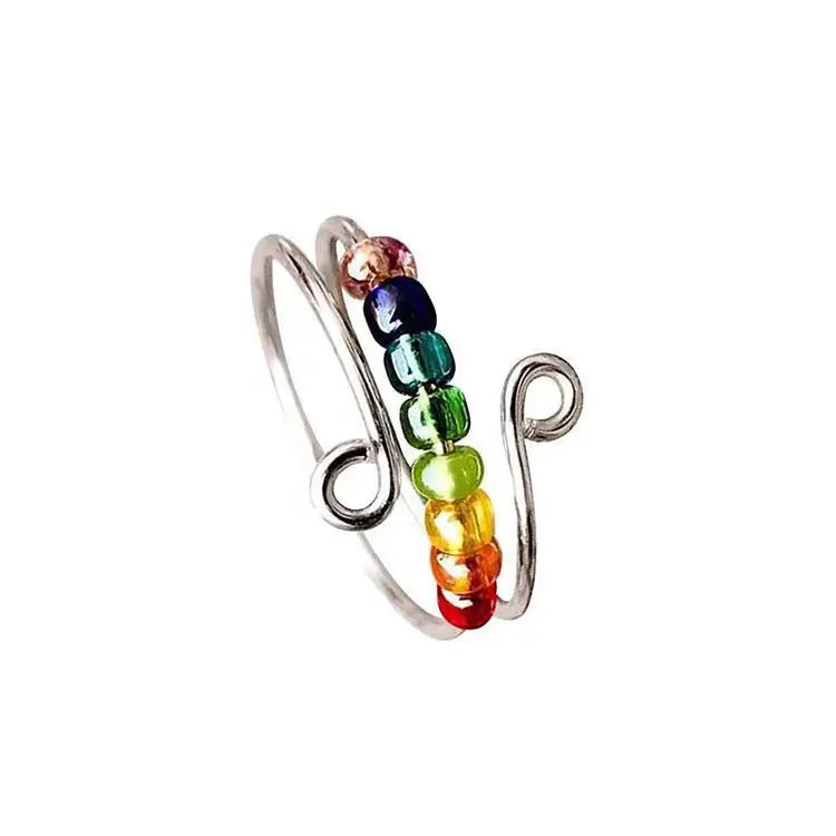 Boho Rainbow Bead Anxiety Ring Stress Relief Fidget Spinner Rotating Fashion Wedding Jewelry