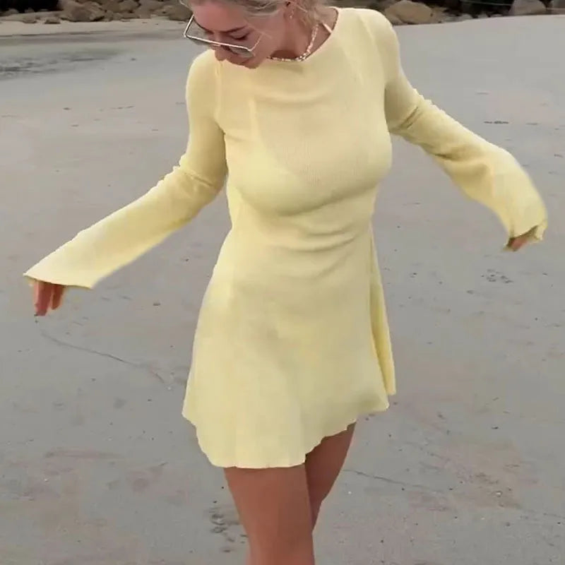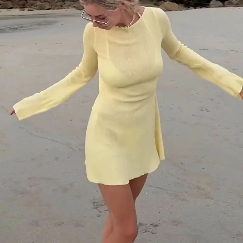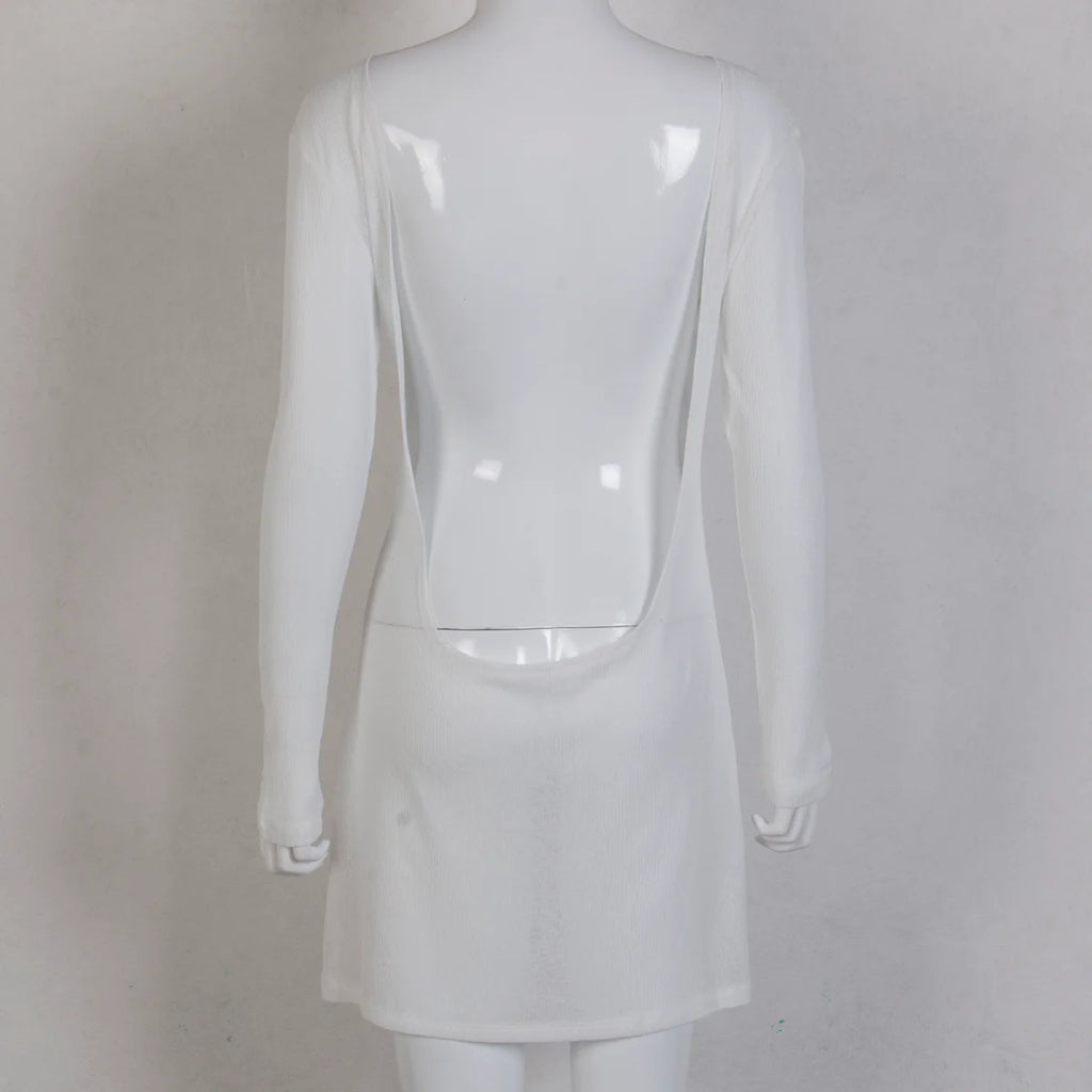 Boho Backless Summer Dress Short Beach Style Elegant Long Sleeve Slim Fit Y2K Streetwear Women's Sexy Outfit