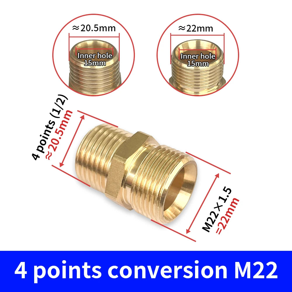 Brass Thread Connector Adaptor 3/8" 1/4" to M14 M18 M22 for High Pressure Washer Gun Hose Conversion