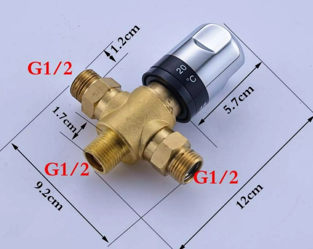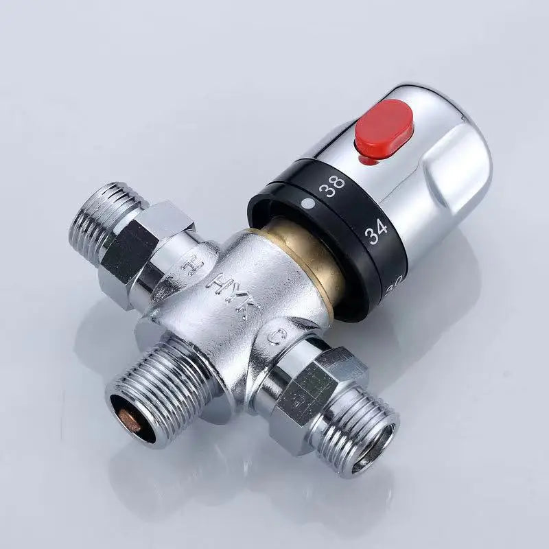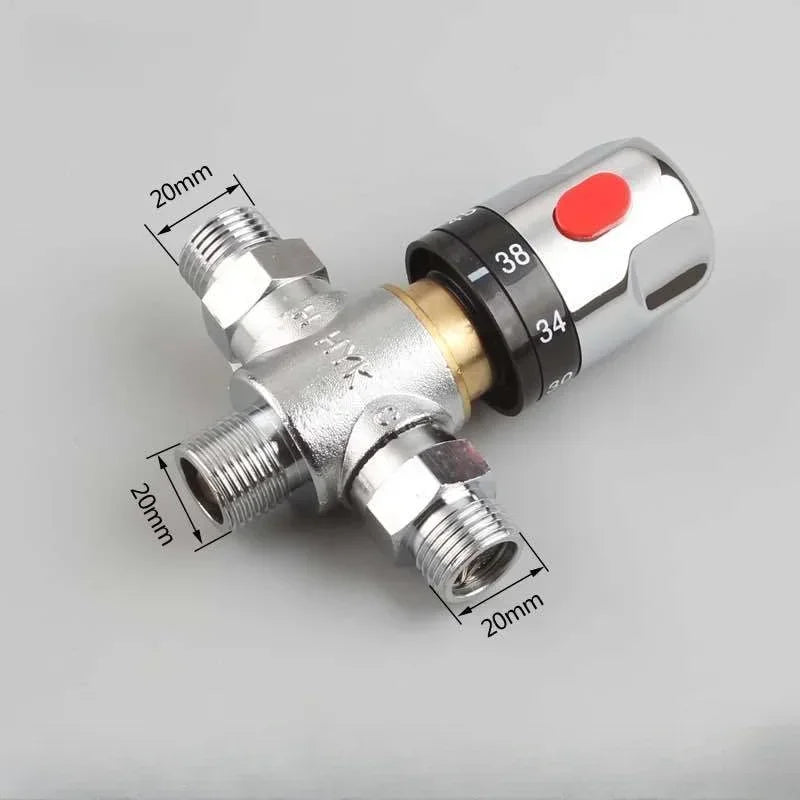 Upgrade your shower experience with this contemporary thermostatic faucet. Designed as a universal replacement part, this faucet is suitable for showers from most manufacturers. It features a brass internal thermostat and offers a comfortable temperature range from 20°C to 48°C, with a safety override button set at 38°C. The red safety switch ensures secure temperature settings, with a maximum temperature limit of 50°C for added safety. Enjoy effortless control with simple temperature markers, perfect for both built-in and straight type installations.