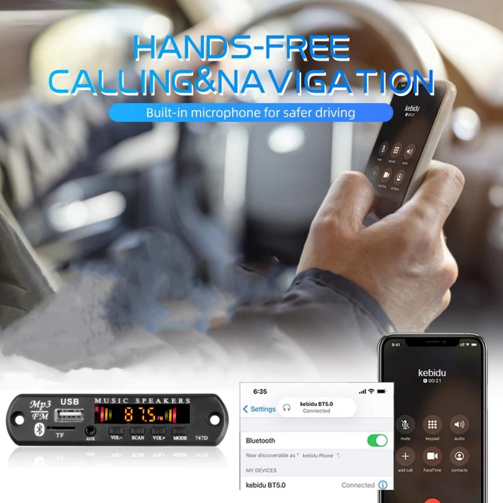 Bluetooth 5.0 MP3 WMA WAV Decoder Board Car Audio USB TF FM Radio AUX Module 9-12V Music Player