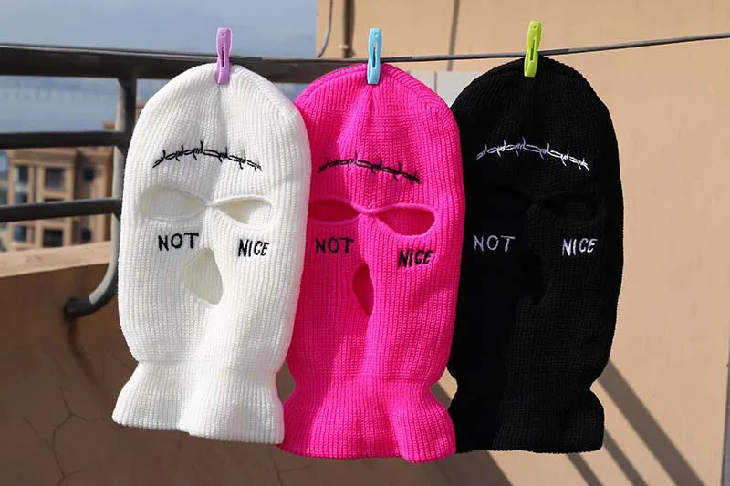 Embroidery 3-Hole Tactical Balaclava Full Face Mask Ski Winter Hat Halloween Party Cycling Cap