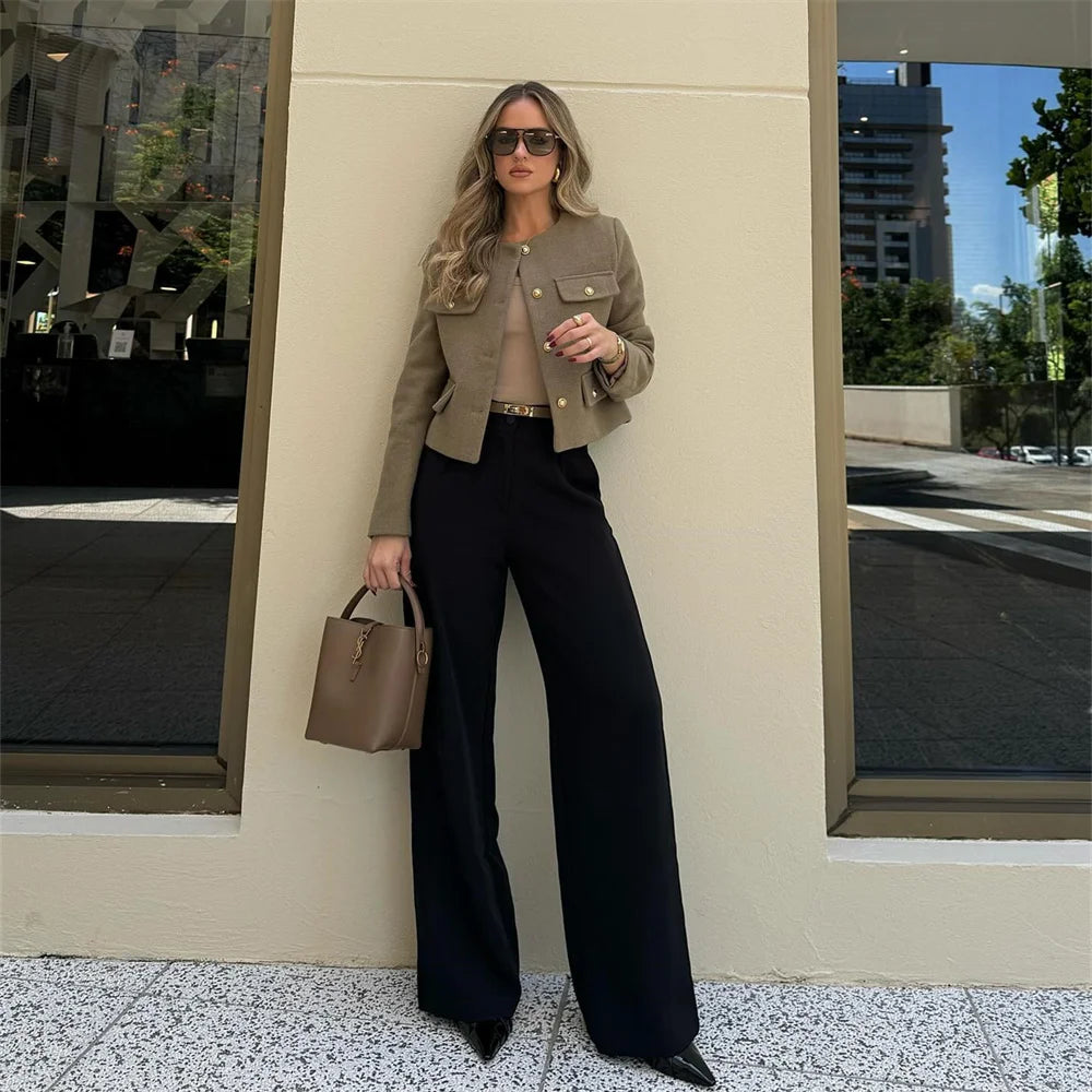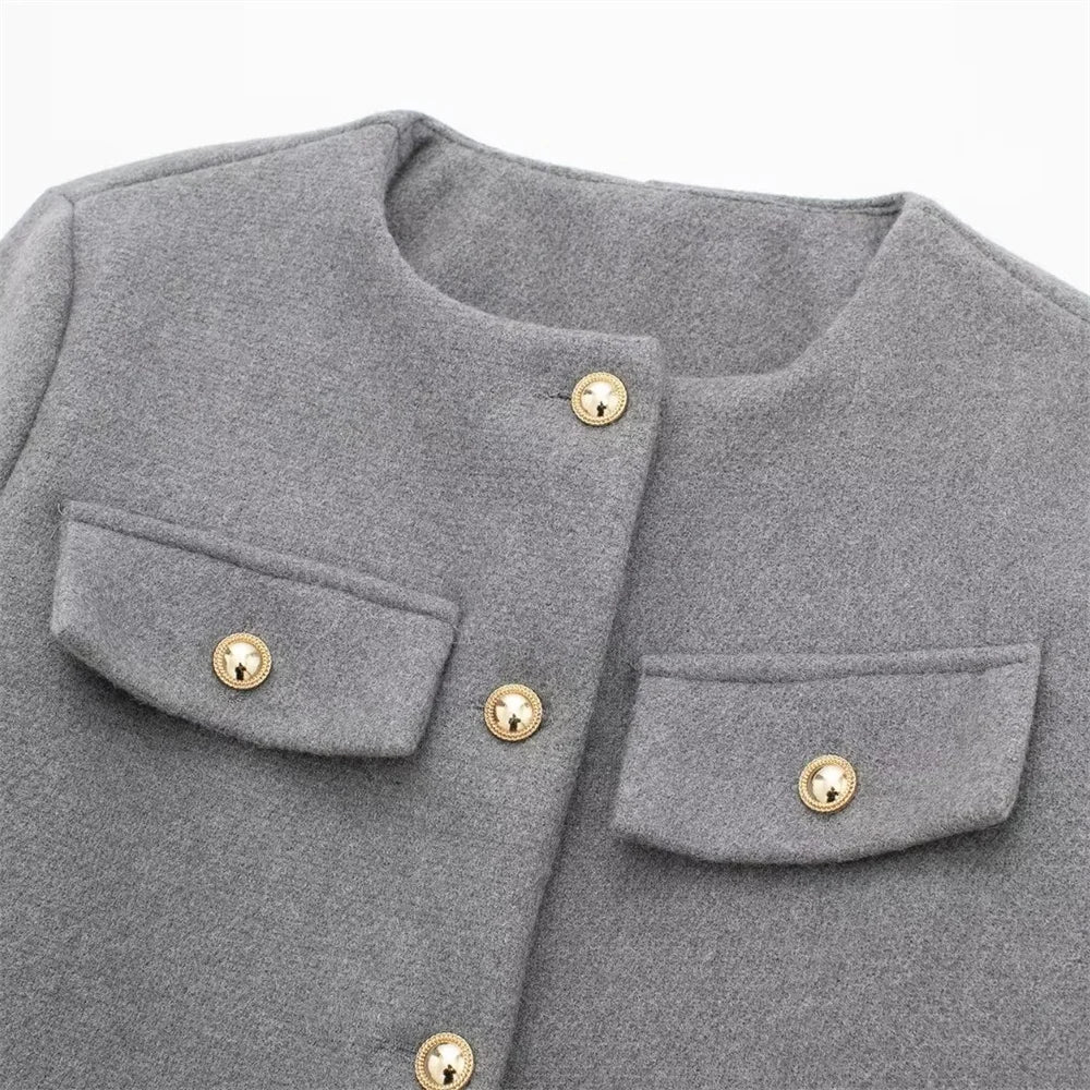 2024 European American Women's Spring Casual Flip Decor Short Jacket