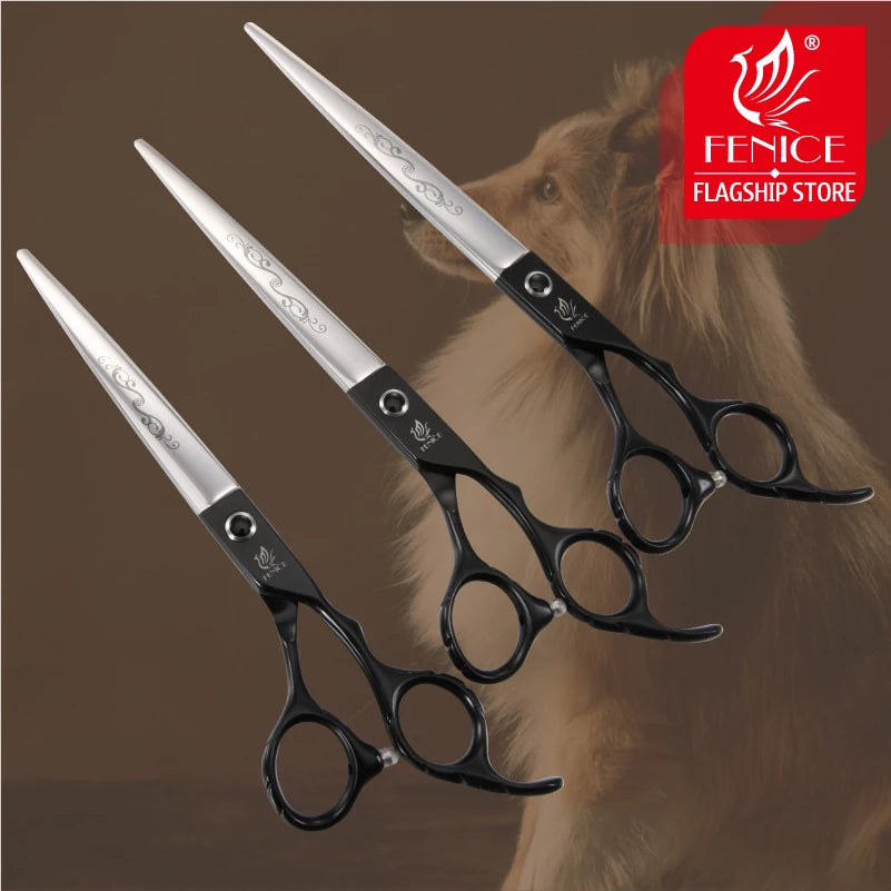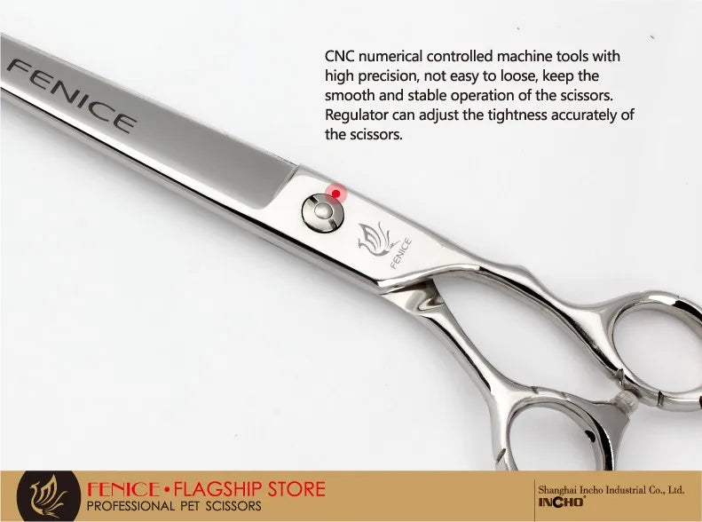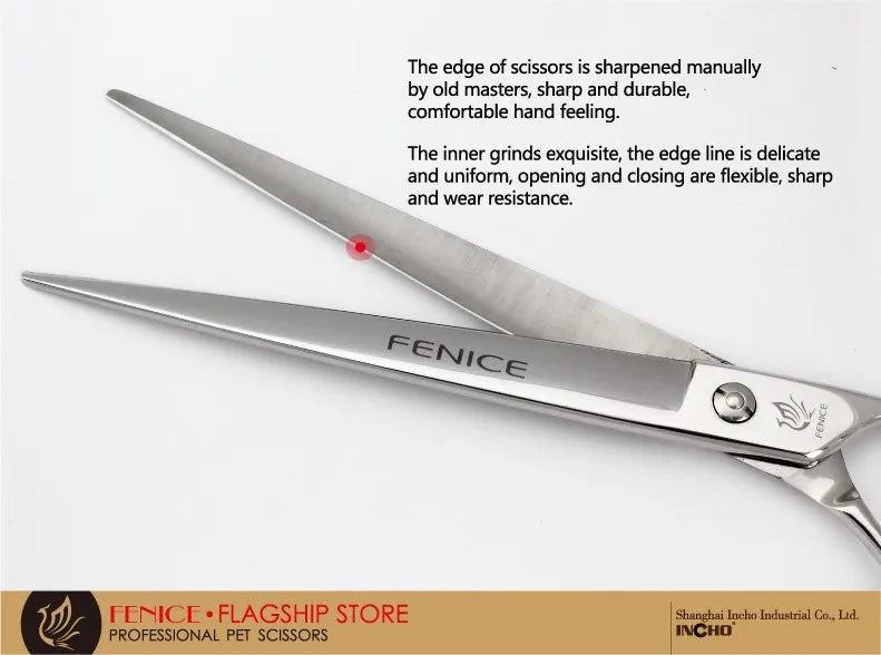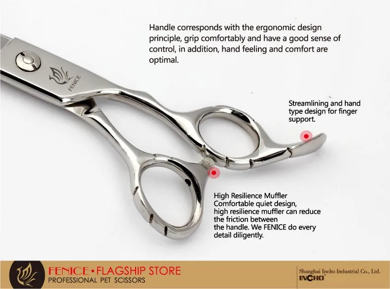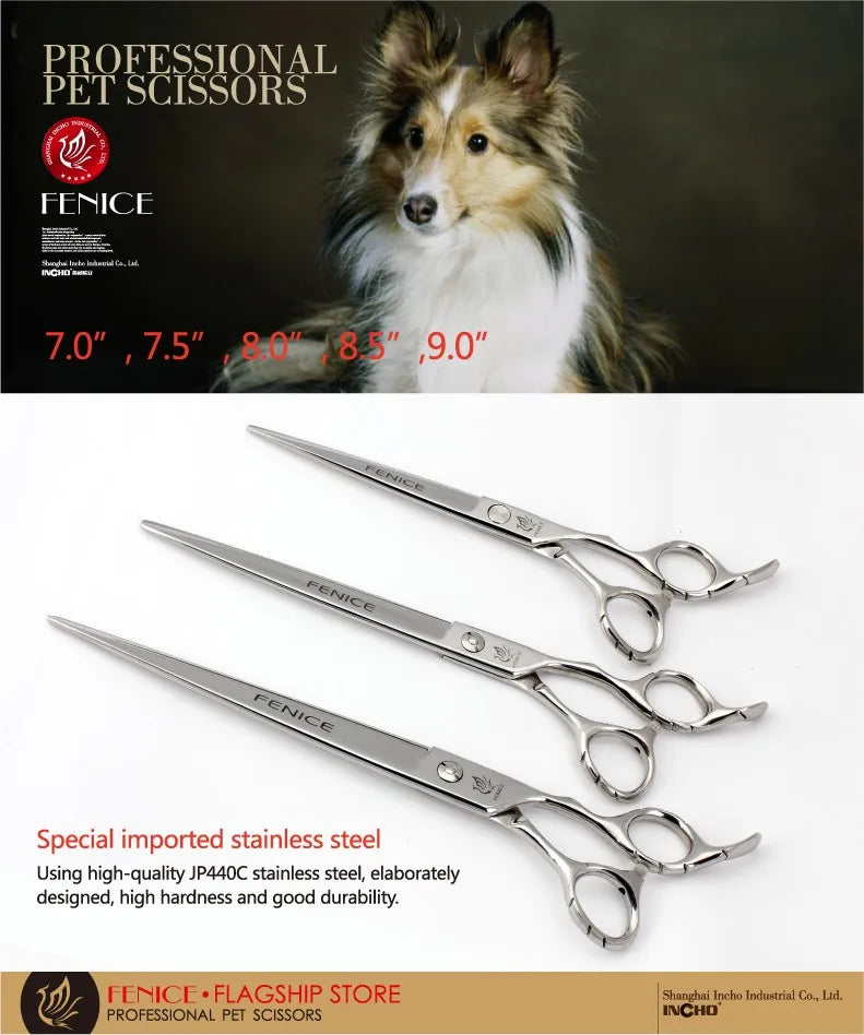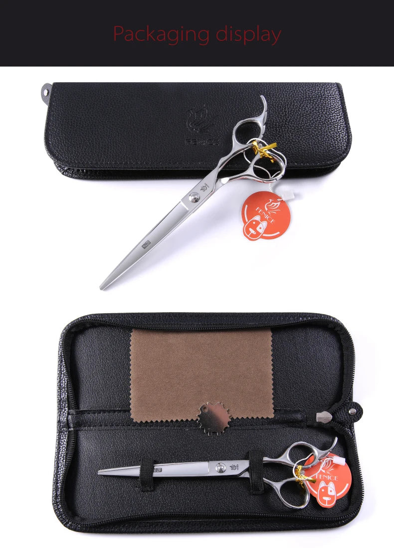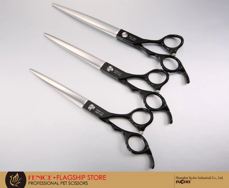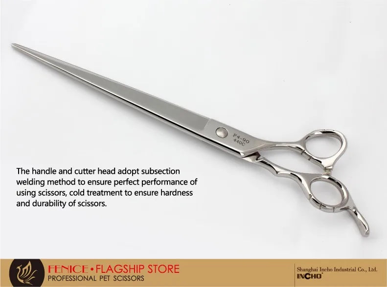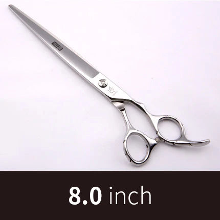 Discover our premium stainless steel grooming scissors, expertly crafted for precise pet care. Made from durable JP 440C stainless steel, these shears ensure long-lasting sharpness and exceptional performance. Ideal for both professional groomers and pet owners, they feature an ergonomic non-slip handle for a secure and comfortable grip. Available in a range of sizes from 7 to 9 inches, these sleek silver scissors provide a flawless grooming finish every time.