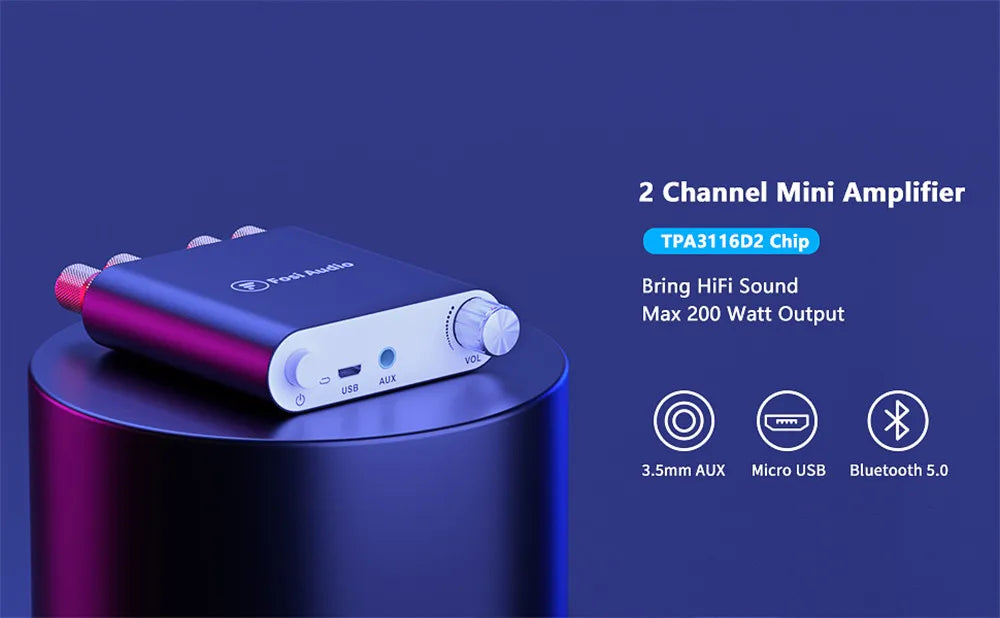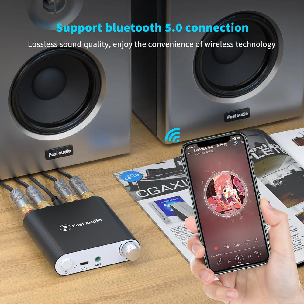 Experience superior sound quality with this compact, high-performance integrated amplifier. The amplifier features a Class D architecture, delivering up to 100W per channel for a powerful audio experience. With versatile connectivity options, including Bluetooth 5.0, USB, and AUX inputs, it provides seamless streaming from a range of devices. Perfect for use with passive speakers, this amplifier automatically prioritizes AUX input when detected, ensuring hassle-free switching. Designed for audiophiles who demand HiFi precision, it employs advanced chips to enhance your listening experience.