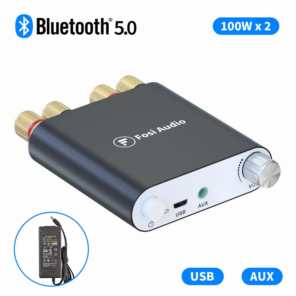 Bluetooth Sound Power Amplifier 100W x2 Wireless Receiver Mini HiFi Digital Amp with TPA3116D2 and Power Supply