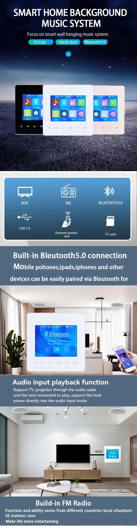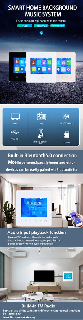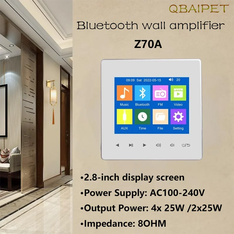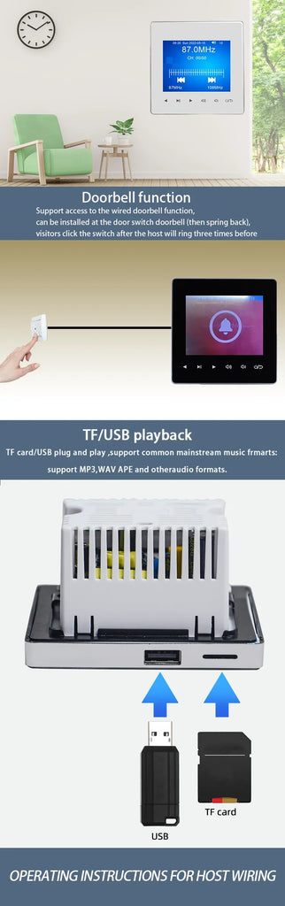 Introducing the Mini Wireless Bluetooth Audio Music Touch Key In-Wall Amplifier, designed to enhance your audio experience with seamless style and functionality. This compact yet powerful device features a 2.8-inch display with a 320x240 resolution that beautifully complements its sleek touch key interface. Suitable for any home or office setting, it ensures effortless installation thanks to its standard in-wall design.