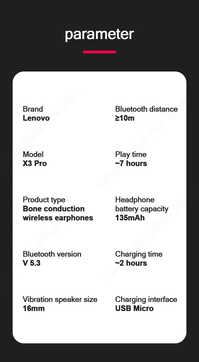 Engineered for dynamic sound, the X3 Pro features true bone conduction technology with a patented vibrator for safe listening without harming the eardrum. The 16mm large moving unit enhances sound quality, offering a penetrating audio experience. Equipped with the latest Bluetooth 5.3 technology, it ensures fast pairing and stable connectivity with ultra-low latency. With an ergonomic on-ear design, this lightweight headset (only 25g) guarantees comfort with no sense of weight during use. Enjoy up to seven hours of continuous play with IP56 sports waterproof protection to minimize sound leakage.