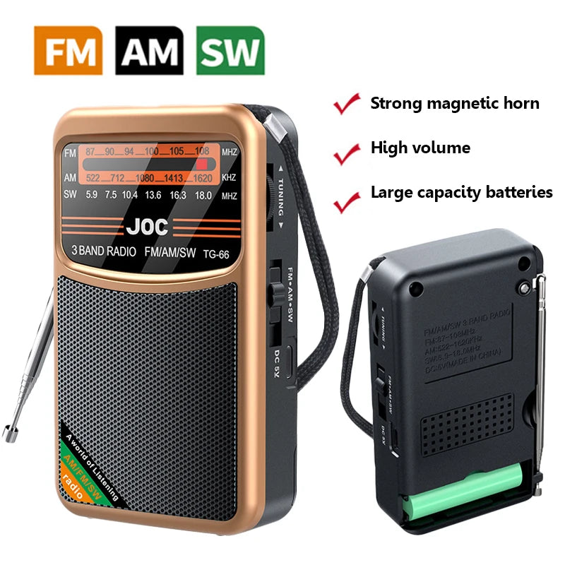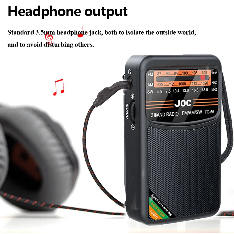 Compact Portable FM AM SW Radio Receiver with Retractable Antenna & 3.5mm Headphone Jack