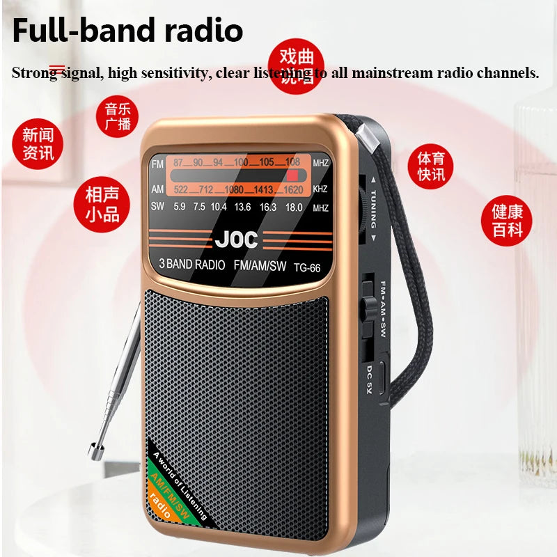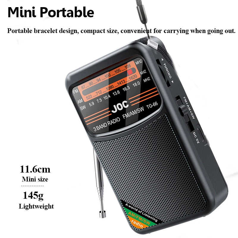 Introducing the Mini Portable Full Band Radio, a compact and versatile device designed for radio enthusiasts. Enjoy high sensitivity reception with access to FM, AM, and SW channels, ensuring clear listening experiences across all mainstream radio stations. The radio's strong signal and retractable antenna enhance reception quality.